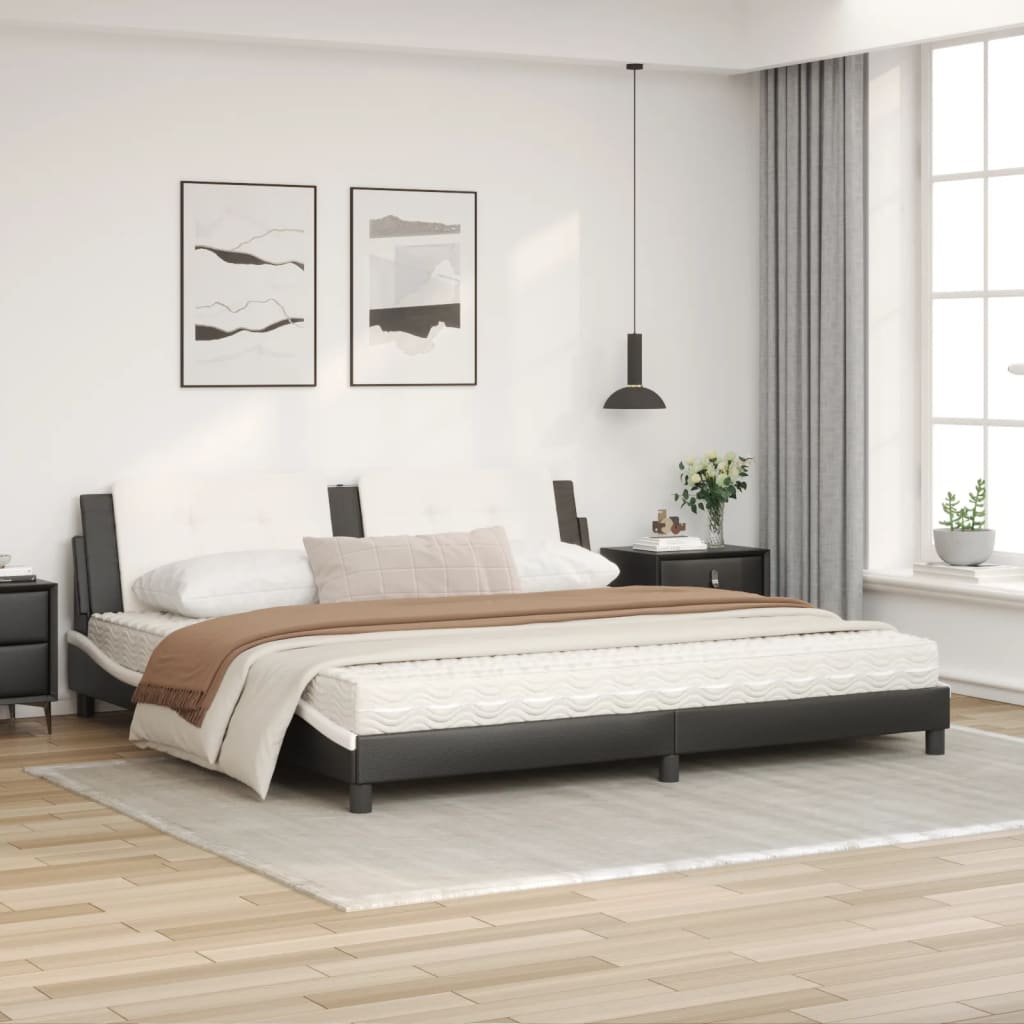 In diesem Bett mit Matratze genießt du einen besseren, erholsameren Schlaf! Es ist eine einladende Ergänzung zu jedem Schlafzimmer. Langlebiges Kunstleder: Hochwertiges Kunstleder ist ein äußerst langlebiges Material. Es ist schmutzabweisend und lässt sich mit einem feuchten Tuch einfach reinigen. Durch die glatte Oberfläche weist es die Schönheit von Echtleder und einen luxuriösen Look auf. Sperrholzlatten: Die Sperrholzlatten sorgen für eine gute Gewichtsverteilung und auch dafür, dass die Matratze bei jeder Bewegung deines Körpers während des Schlafes an Ort und Stelle bleibt. Ausgezeichnete Unterstützung: Das Kopfteil-Kissen ist mit Schaumstoff gefüllt und fühlt sich daher extra weich und komfortabel an. Es bietet eine ausgezeichnete Rückenunterstützung beim Sitzen im Bett oder Fernsehen. Schaumstoffmatratze: Die Bettmatratze besteht aus 3 Schichten und ist mit 22D PU-Schaumstoff gefüllt, um optimalen Komfort zu bieten. Sie lindert Müdigkeit und fördert die Blutzirkulation, um für vollständige Entspannung und einen guten Schlaf nach einem langen Tag zu sorgen. Zudem besitzt die Matratze die Härtegrade H2 und H3, sodass du durch einfaches Wenden der Matratze den Härtegrad wählen kannst, der deinen Anforderungen bestens entspricht. Wellenförmiges Seitendesign: Das stilvolle und raffinierte Design in Wellenform verleiht deiner Einrichtung eine moderne und elegante Note und macht das Bettgestell zum Mittelpunkt deines Schlafzimmers.