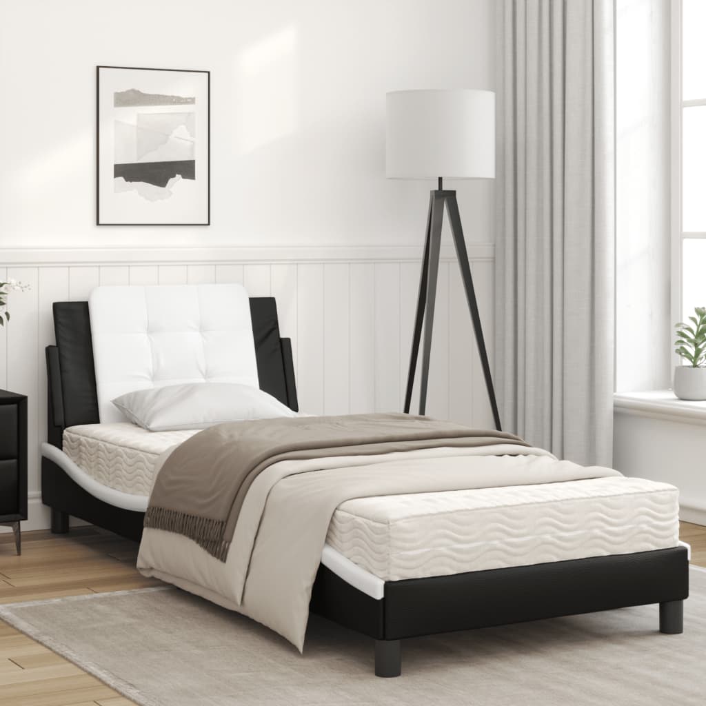 In diesem Bett mit Matratze genießt du einen besseren, erholsameren Schlaf! Es ist eine einladende Ergänzung zu jedem Schlafzimmer. Langlebiges Kunstleder: Hochwertiges Kunstleder ist ein äußerst langlebiges Material. Es ist schmutzabweisend und lässt sich mit einem feuchten Tuch einfach reinigen. Durch die glatte Oberfläche weist es die Schönheit von Echtleder und einen luxuriösen Look auf. Sperrholzlatten: Die Sperrholzlatten sorgen für eine gute Gewichtsverteilung und auch dafür, dass die Matratze bei jeder Bewegung deines Körpers während des Schlafes an Ort und Stelle bleibt. Ausgezeichnete Unterstützung: Das Kopfteil-Kissen ist mit Schaumstoff gefüllt und fühlt sich daher extra weich und komfortabel an. Es bietet eine ausgezeichnete Rückenunterstützung beim Sitzen im Bett oder Fernsehen. Schaumstoffmatratze: Die Bettmatratze besteht aus 3 Schichten und ist mit 22D PU-Schaumstoff gefüllt, um optimalen Komfort zu bieten. Sie lindert Müdigkeit und fördert die Blutzirkulation, um für vollständige Entspannung und einen guten Schlaf nach einem langen Tag zu sorgen. Zudem besitzt die Matratze die Härtegrade H2 und H3, sodass du durch einfaches Wenden der Matratze den Härtegrad wählen kannst, der deinen Anforderungen bestens entspricht. Wellenförmiges Seitendesign: Das stilvolle und raffinierte Design in Wellenform verleiht deiner Einrichtung eine moderne und elegante Note und macht das Bettgestell zum Mittelpunkt deines Schlafzimmers.