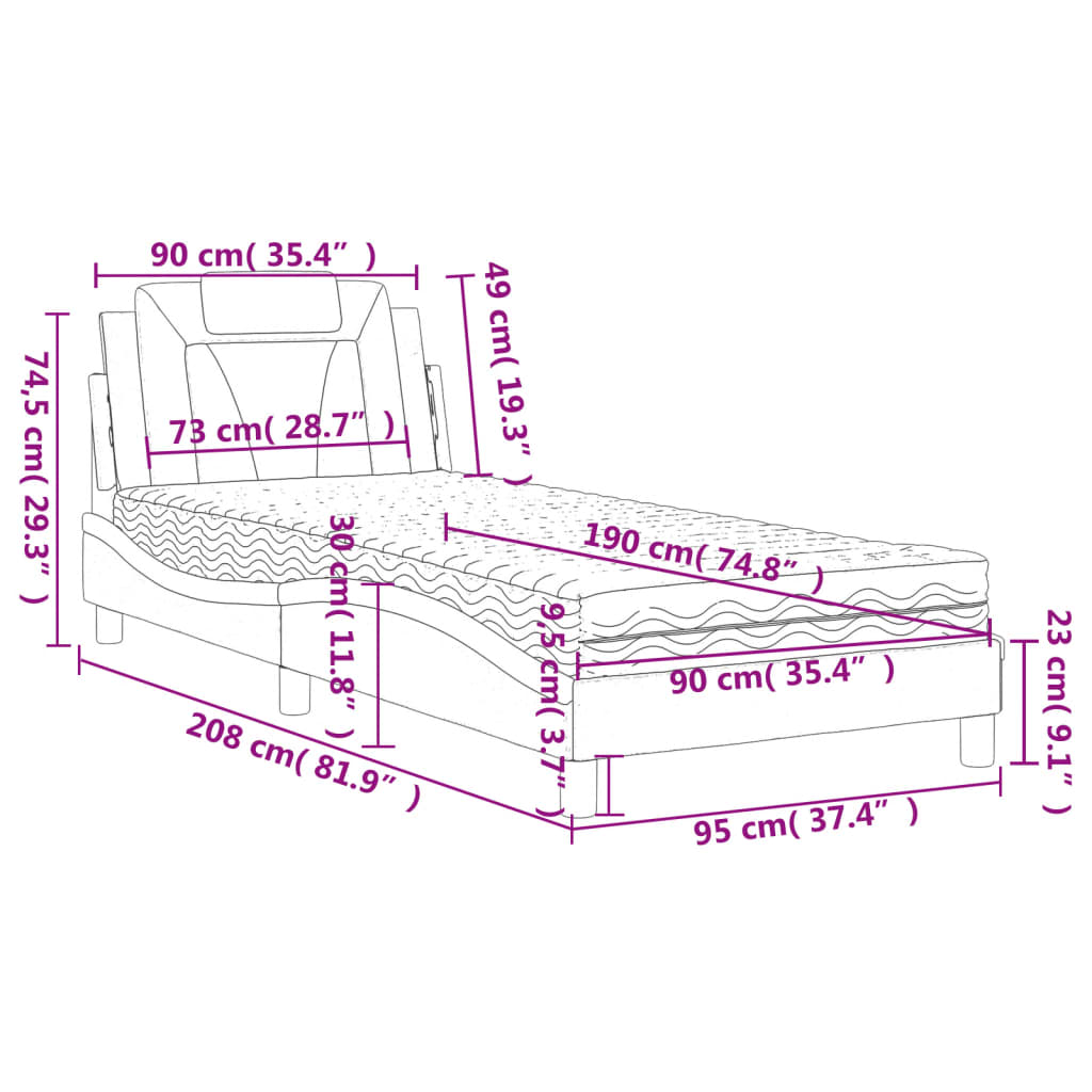 In diesem Bett mit Matratze genießt du einen besseren, erholsameren Schlaf! Es ist eine einladende Ergänzung zu jedem Schlafzimmer. Langlebiges Kunstleder: Hochwertiges Kunstleder ist ein äußerst langlebiges Material. Es ist schmutzabweisend und lässt sich mit einem feuchten Tuch einfach reinigen. Durch die glatte Oberfläche weist es die Schönheit von Echtleder und einen luxuriösen Look auf. Sperrholzlatten: Die Sperrholzlatten sorgen für eine gute Gewichtsverteilung und auch dafür, dass die Matratze bei jeder Bewegung deines Körpers während des Schlafes an Ort und Stelle bleibt. Ausgezeichnete Unterstützung: Das Kopfteil-Kissen ist mit Schaumstoff gefüllt und fühlt sich daher extra weich und komfortabel an. Es bietet eine ausgezeichnete Rückenunterstützung beim Sitzen im Bett oder Fernsehen. Schaumstoffmatratze: Die Bettmatratze besteht aus 3 Schichten und ist mit 22D PU-Schaumstoff gefüllt, um optimalen Komfort zu bieten. Sie lindert Müdigkeit und fördert die Blutzirkulation, um für vollständige Entspannung und einen guten Schlaf nach einem langen Tag zu sorgen. Zudem besitzt die Matratze die Härtegrade H2 und H3, sodass du durch einfaches Wenden der Matratze den Härtegrad wählen kannst, der deinen Anforderungen bestens entspricht. Wellenförmiges Seitendesign: Das stilvolle und raffinierte Design in Wellenform verleiht deiner Einrichtung eine moderne und elegante Note und macht das Bettgestell zum Mittelpunkt deines Schlafzimmers.