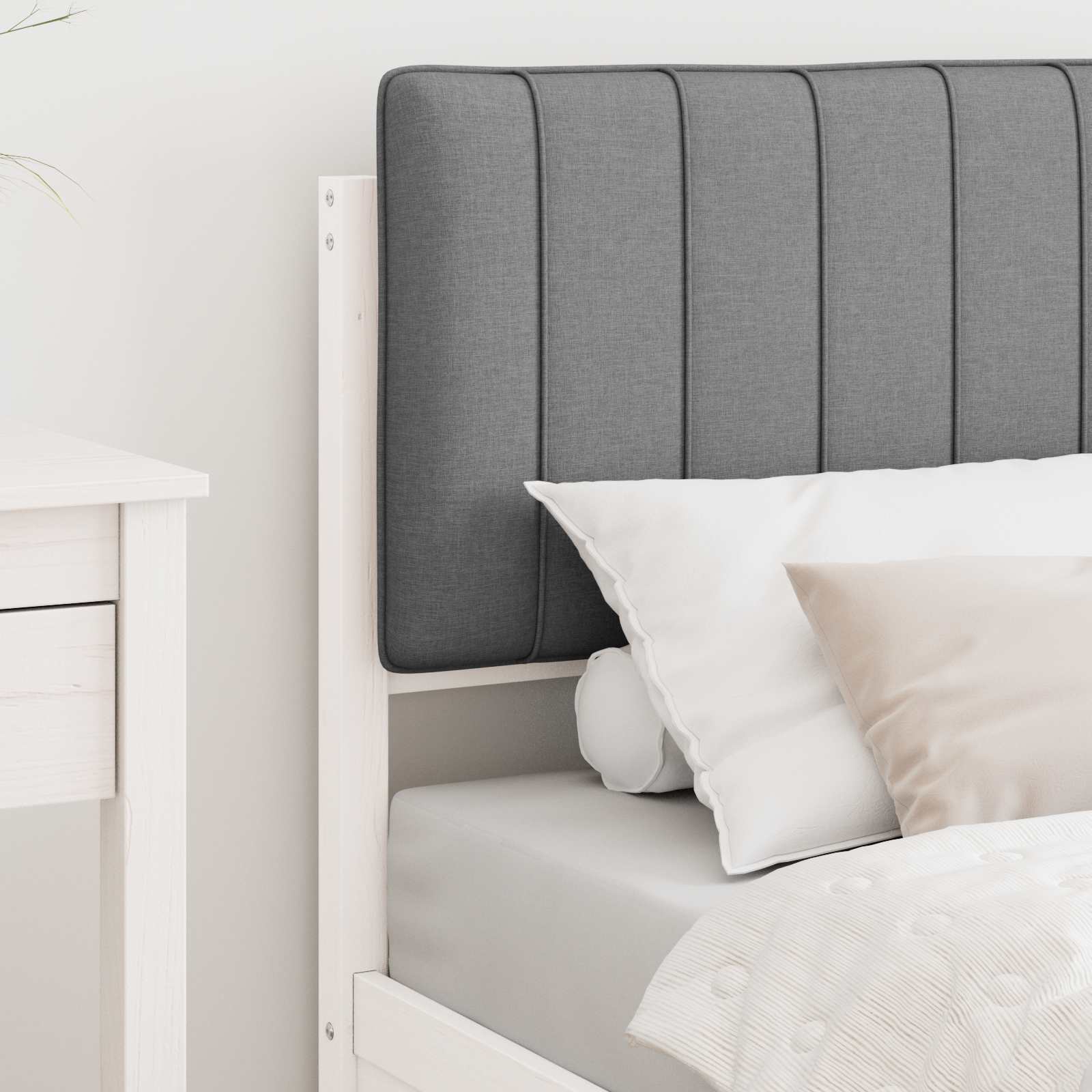 Dieses Holzbettgestell mit gepolsterter Kopfstütze ist ein echtes Highlight für jedes Schlafzimmer, das modernen Stil, Funktionalität und Komfort vereint. Mit klaren Linien und minimalistischem Design passt es perfekt ins zeitgemäße Schlafzimmer. Die neutrale Farbpalette fügt sich problemlos in verschiedene Einrichtungsstile ein, sodass du dein Zimmer nach Lust und Laune gestalten kannst. Massivholz-Kiefernholzrahmen Hergestellt aus hochwertigem massivem Kiefernholz, bietet dieses Bettgestell eine stabile Basis für erholsame Nächte. Das Material sorgt für lange Haltbarkeit und bleibt stylish in deinem Schlafbereich. Gepolsterte Kopfstütze Die Kopfstütze ist komfortabel gepolstert und sorgt für Bequemlichkeit beim Lesen oder Entspannen. Der waschbare Bezug macht die Pflege einfach und hält alles frisch. Plattform-Lattenrost Der Plattform-Lattenrost sorgt für gleichmäßige Unterstützung und macht einen separaten Boxspring überflüssig. Dadurch bleibt die Matratze lange in Topform. Einfache Montage Das Bett ist easy zusammenzubauen und benötigt nur einen Schraubendreher. Die Anleitung ist leicht verständlich, also können du und eine andere Person das Bett schnell aufstellen. Ideal für alle, die schnell Möbel haben wollen. Vereinfachte Sauberkeit Die Pflege des Bettgestells ist ein Kinderspiel; wisch einfach die Oberflächen mit einem feuchten Tuch ab, um es sauber zu halten. So bleibt das Gestell über Jahre hinweg ein Hingucker in deinem Schlafzimmer.
