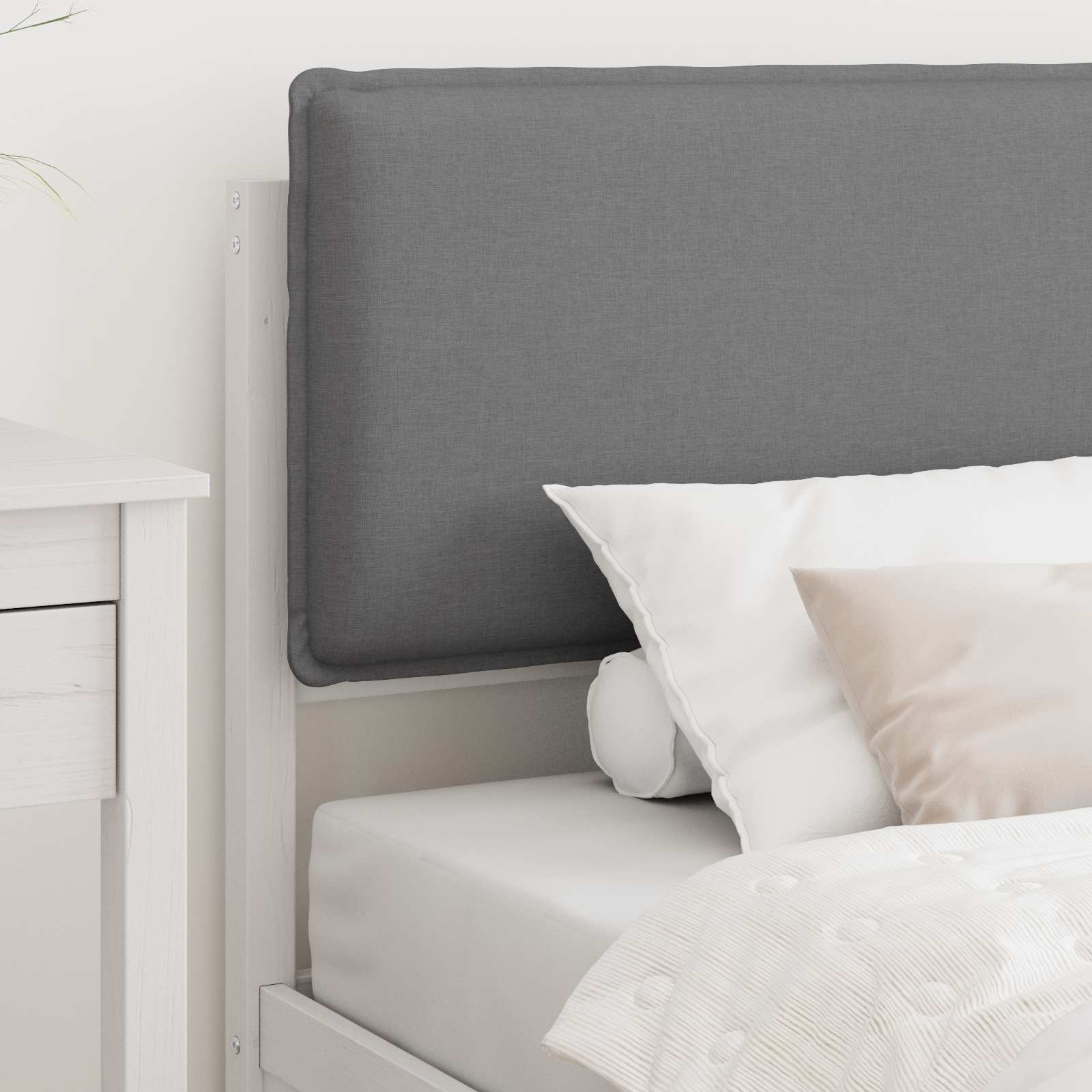 Dieses schick gestaltete Bettgestell mit gepolstertem Kopfteil bringt moderne Einfachheit in dein Schlafzimmer. Die klaren Linien und das minimalistische Design werten jede Dekoration auf. Das robuste Kiefernholz sorgt für Langlebigkeit und sorgt für eine angenehme, natürliche Atmosphäre. Es bietet festen Halt mit der slatted Plattform, was bedeutet, dass du keine Boxspringmatratze brauchst, was dir einen besseren Schlafkomfort bringt. Egal, ob du ein minimalistisches Refugium oder ein modernes Highlight möchtest, dieses Bett erfüllt beides. Qualitätsbau: Aus massivem Kiefernholz, stabil und langlebig. Die natürliche Holzmaserung bringt organische Eleganz und sorgt dafür, dass das Bett jahrelang stabil bleibt. Eine top Investition für dein Zuhause. Inklusive Kopfteil: Gepolstert mit weichem Schaumstoff und einer bequemen Oberfläche, ideal zum Entspannen und Lesen. Abnehmbare, waschbare Bezüge machen die Pflege leicht und halten es frisch. Funktionales und einfaches Setup: Kein Bedarf an Boxspringmatratze, was alles einfacher macht und Unordnung reduziert. Plattformlatten geben gleichmäßige Matratzenunterstützung für besseren Schlaf. Montage ist kinderleicht und braucht nur zwei Leute und einen Schraubendreher. Raumoptimierendes Design: Perfekt für moderne Schlafzimmer, passt gut in kleine Apartments und große Häuser. Die schlichte Form lässt sich problemlos in verschiedene Einrichtungsstile integrieren. Einfache Pflege: Halte es schön, indem du einfach mit einem feuchten Tuch drüberwischst. Die robuste Oberfläche hält täglichem Gebrauch stand und sieht dabei toll aus.