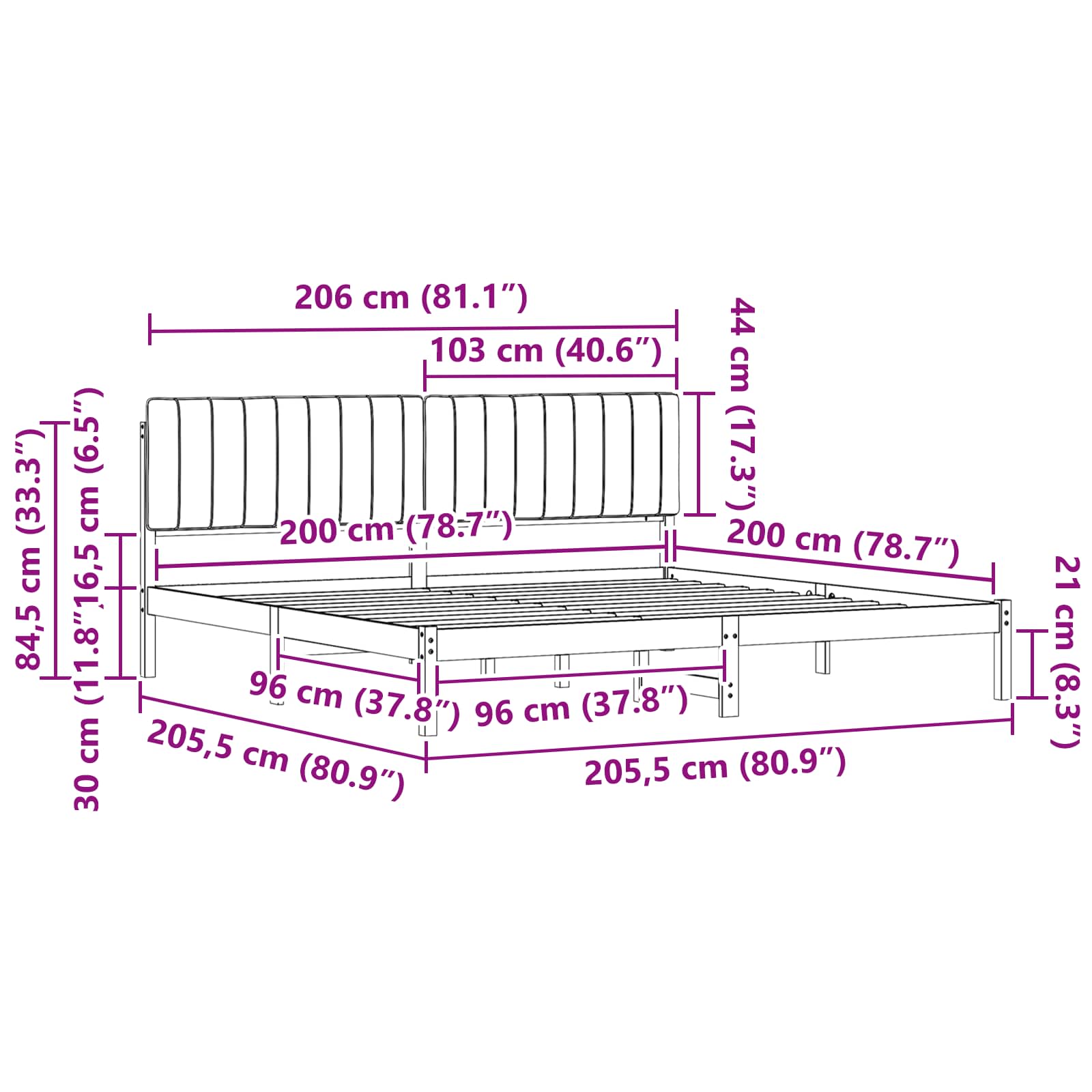 - Matratzengröße: Kaiserbett (200 cm x 200 cm oder 79" x 79")