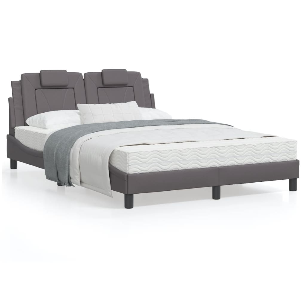 Mit diesem Bettgestell mit Kopfteil genießt du einen besseren, erholsameren Schlaf! Es ist eine angenehme Bereicherung für jedes Schlafzimmer. Langlebiges Kunstleder: Hochwertiges Kunstleder ist ein äußerst langlebiges Material. Es ist schmutzabweisend und lässt sich mit einem feuchten Tuch einfach reinigen. Durch die glatte Oberfläche weist es die Schönheit von Echtleder und einen luxuriösen Look auf.Sperrholzlatten: Die Sperrholzlatten sorgen für eine gute Gewichtsverteilung und auch dafür, dass die Matratze bei jeder Bewegung deines Körpers während des Schlafes an Ort und Stelle bleibt.Ausgezeichnete Unterstützung: Das Kopfteil-Kissen ist mit Schaumstoff gefüllt und fühlt sich daher extra weich und komfortabel an. Es bietet eine ausgezeichnete Rückenunterstützung beim Sitzen im Bett oder Fernsehen.Wellenförmiges Seitendesign: Das stilvolle und raffinierte Design in Wellenform verleiht deiner Einrichtung eine moderne und elegante Note und macht das Bettgestell zum Mittelpunkt deines Schlafzimmers. Gut zu wissen:Bei diesem Bett ist keine Matratze im Lieferumfang enthalten. Wir bieten jedoch eine große Auswahl an Matratzen an. Du kannst in unserem Shop nach einer passenden Matratze suchen.