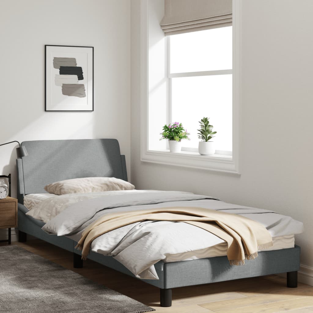 Mit diesem Bettgestell mit Kopfteil genießt du einen besseren, erholsameren Schlaf! Es ist eine angenehme Bereicherung für jedes Schlafzimmer. Strapazierfähiger Stoff: Der Stoff weist eine schlichte und saubere Optik auf und ist außerdem atmungsaktiv und langlebig.Stützbeine: Das Bett wird von stabilen Beinen getragen, die seine Stabilität, Sicherheit und Festigkeit gewährleisten.Sperrholzlatten: Die Sperrholzlatten sorgen für eine gute Gewichtsverteilung und auch dafür, dass die Matratze bei jeder Bewegung deines Körpers während des Schlafes an Ort und Stelle bleibt.Hervorragende Unterstützung: Das Bett-Kopfteil bietet dir eine hervorragende Unterstützung, während du im Bett sitzt, um zu lesen oder fernzusehen.Wellenförmiges Seitendesign: Das stilvolle und raffinierte Design in Wellenform verleiht deiner Einrichtung eine moderne und elegante Note und macht das Bettgestell zum Mittelpunkt deines Schlafzimmers. Gut zu wissen:Bei diesem Bett ist keine Matratze im Lieferumfang enthalten. Wir bieten jedoch eine große Auswahl an Matratzen an. Du kannst in unserem Shop nach einer passenden Matratze suchen.