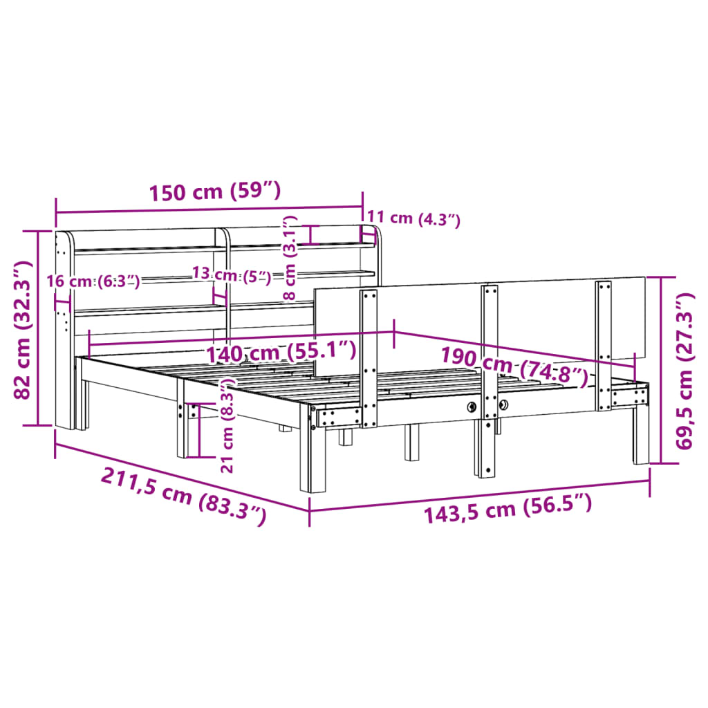 Genießen Sie einen erholsamen Schlaf in diesem Holzbett! Es wird eine praktische und dekorative Ergänzung zu Ihrem Interieur sein. Massives Kiefernholz: Massives Kiefernholz ist ein wunderschönes Naturmaterial. Kiefernholz weist eine gerade Maserung auf und die Aststellen verleihen dem Material seine charakteristische, rustikale Optik.Sperrholzlatten: Die Sperrholzlatten sorgen für eine gute Gewichtsverteilung sowie einen guten Halt der Matratze, während ihre Atmungsaktivität nicht beeinträchtigt wird.Reichlich Stauraum: Das elegante Kopfteil des Bettes verfügt über zwei praktische Ablagen, die reichlich Stauraum bieten, um wichtige Sachen nachts griffbereit zu halten.Freistehend: Das freistehende Kopfteil lässt sich mühelos anbringen und bei Bedarf umstellen, ohne eine Befestigung an der Wand zu erfordern. Gut zu wissen: Bei diesem Bett ist keine Matratze im Lieferumfang enthalten. Wir bieten jedoch eine große Auswahl an Matratzen an. Du kannst in unserem Shop nach einer passenden Matratze suchen.