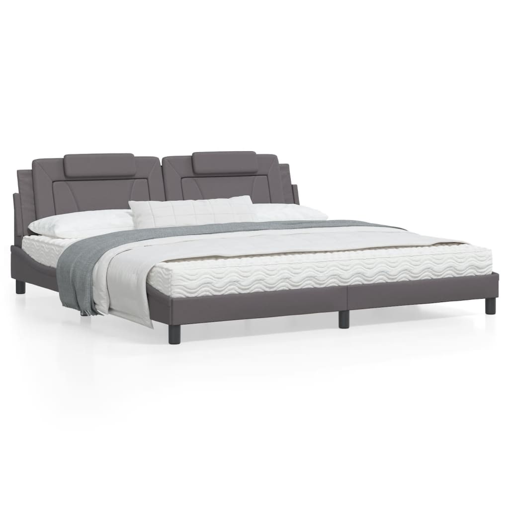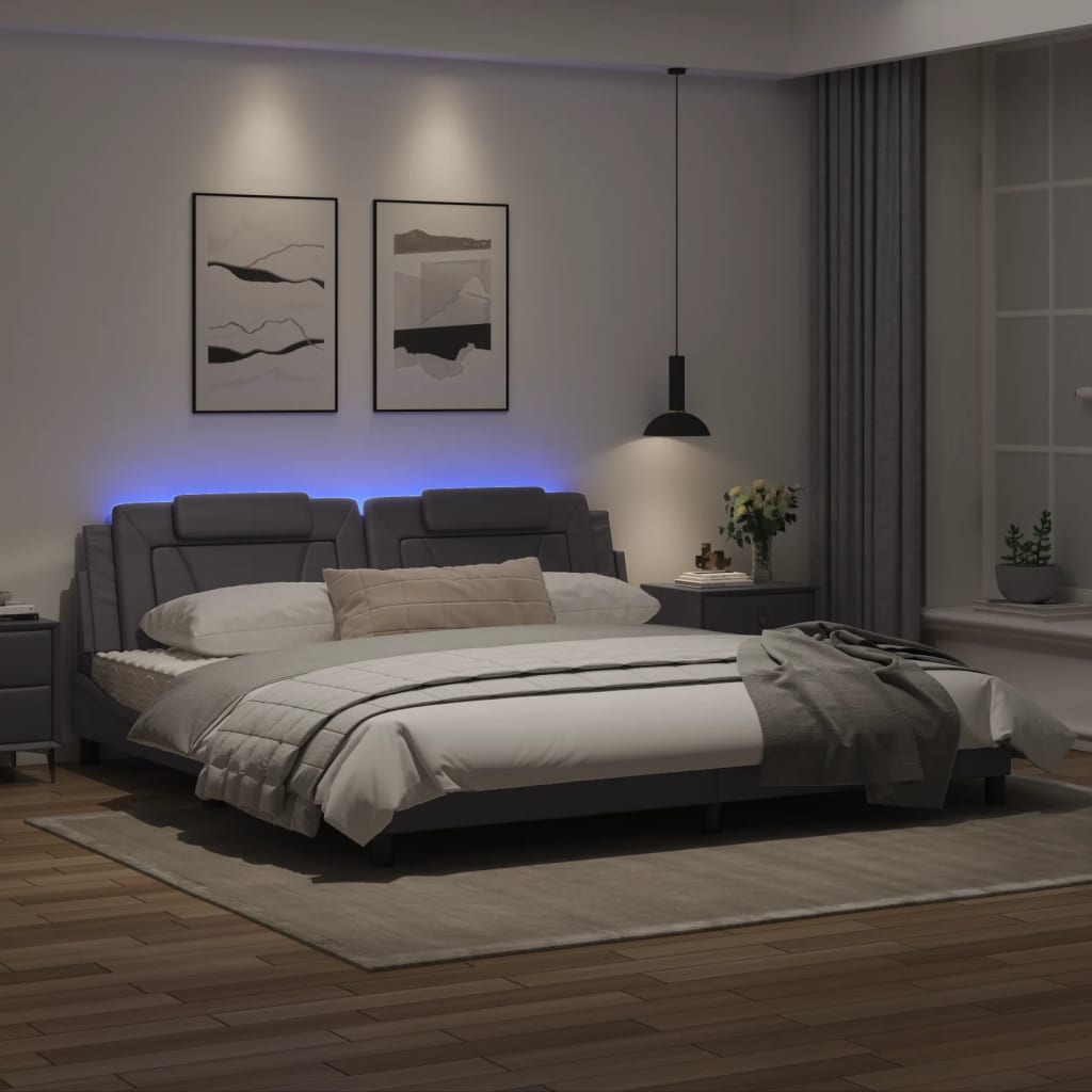 Dieses Bettgestell mit LED-Leuchten sorgt für eine erholsame Nachtruhe! Es stellt eine einladende Ergänzung zu jedem Schlafzimmer dar. Langlebiges Kunstleder: Hochwertiges Kunstleder ist ein äußerst langlebiges Material. Es ist schmutzabweisend und lässt sich mit einem feuchten Tuch einfach reinigen. Durch die glatte Oberfläche weist es die Schönheit von Echtleder und einen luxuriösen Look auf.Sperrholzlatten: Die Sperrholzlatten sorgen für eine gute Gewichtsverteilung und auch dafür, dass die Matratze bei jeder Bewegung deines Körpers während des Schlafes an Ort und Stelle bleibt. Ausgezeichnete Unterstützung: Das Kopfteil-Kissen ist mit Schaumstoff gefüllt und fühlt sich daher extra weich und komfortabel an. Es bietet eine ausgezeichnete Rückenunterstützung beim Sitzen im Bett oder Fernsehen. Bunter LED-Streifen: Die farbenfrohen LED-Leuchten bringen das Schlafzimmer zum Leuchten! Die Klettverschlüsse auf der Rückseite des Kopfteils können zur Befestigung der LED-Leuchten verwendet werden. Wellenförmiges Seitendesign: Das stilvolle und raffinierte Design in Wellenform verleiht deiner Einrichtung eine moderne und elegante Note und macht das Bettgestell zum Mittelpunkt deines Schlafzimmers. Gut zu wissen:Bei diesem Bett ist keine Matratze im Lieferumfang enthalten. Wir bieten jedoch eine große Auswahl an Matratzen an. Du kannst in unserem Shop nach einer passenden Matratze suchen.Das Produkt verfügt über einen USB-Anschluss, für den eine zertifizierte 5V-USB-Stromquelle erforderlich ist (nicht im Lieferumfang enthalten).