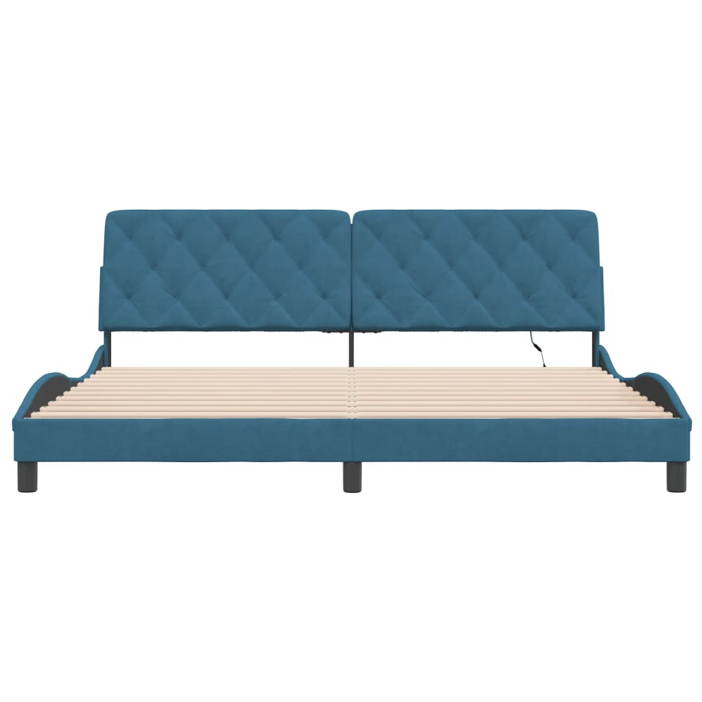 Dieses Bettgestell mit LED-Leuchten sorgt für eine erholsame Nachtruhe! Es stellt eine einladende Ergänzung zu jedem Schlafzimmer dar. Weicher Samt: Samt ist ein weicher und bequemer Stoff, der sich angenehm auf der Haut anfühlt. Sperrholzlatten: Die Sperrholzlatten sorgen für eine gute Gewichtsverteilung und auch dafür, dass die Matratze bei jeder Bewegung deines Körpers während des Schlafes an Ort und Stelle bleibt. Ausgezeichnete Unterstützung: Das Kopfteil-Kissen ist mit Schaumstoff gefüllt und fühlt sich daher extra weich und komfortabel an. Es bietet eine ausgezeichnete Rückenunterstützung beim Sitzen im Bett oder Fernsehen. Bunter LED-Streifen: Die farbenfrohen LED-Leuchten bringen das Schlafzimmer zum Leuchten! Die Klettverschlüsse auf der Rückseite des Kopfteils können zur Befestigung der LED-Leuchten verwendet werden. Wellenförmiges Seitendesign: Das stilvolle und raffinierte Design in Wellenform verleiht deiner Einrichtung eine moderne und elegante Note und macht das Bettgestell zum Mittelpunkt deines Schlafzimmers. Gut zu wissen:Bei diesem Bett ist keine Matratze im Lieferumfang enthalten. Wir bieten jedoch eine große Auswahl an Matratzen an. Du kannst in unserem Shop nach einer passenden Matratze suchen.Das Produkt verfügt über einen USB-Anschluss, für den eine zertifizierte 5V-USB-Stromquelle erforderlich ist (nicht im Lieferumfang enthalten).