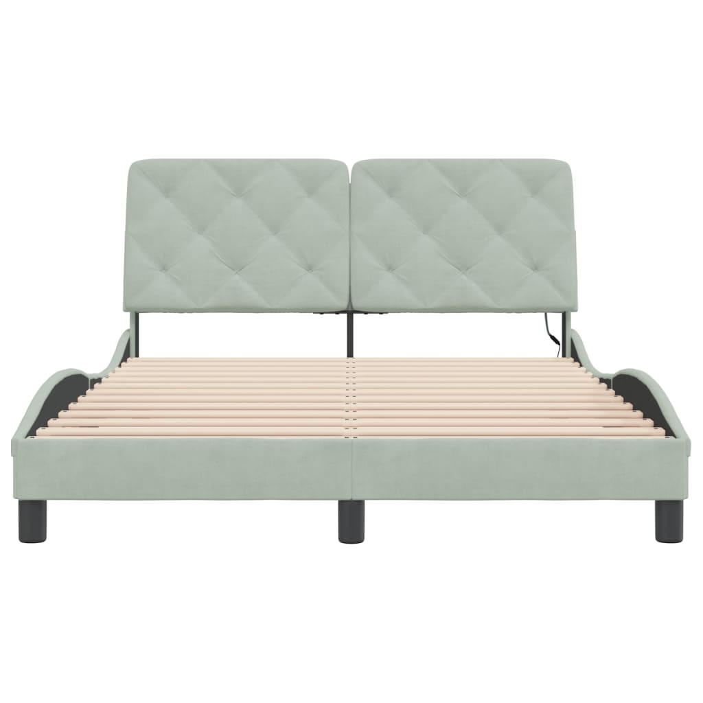 Dieses Bettgestell mit LED-Leuchten sorgt für eine erholsame Nachtruhe! Es stellt eine einladende Ergänzung zu jedem Schlafzimmer dar. Weicher Samt: Samt ist ein weicher und bequemer Stoff, der sich angenehm auf der Haut anfühlt. Sperrholzlatten: Die Sperrholzlatten sorgen für eine gute Gewichtsverteilung und auch dafür, dass die Matratze bei jeder Bewegung deines Körpers während des Schlafes an Ort und Stelle bleibt. Ausgezeichnete Unterstützung: Das Kopfteil-Kissen ist mit Schaumstoff gefüllt und fühlt sich daher extra weich und komfortabel an. Es bietet eine ausgezeichnete Rückenunterstützung beim Sitzen im Bett oder Fernsehen. Bunter LED-Streifen: Die farbenfrohen LED-Leuchten bringen das Schlafzimmer zum Leuchten! Die Klettverschlüsse auf der Rückseite des Kopfteils können zur Befestigung der LED-Leuchten verwendet werden. Wellenförmiges Seitendesign: Das stilvolle und raffinierte Design in Wellenform verleiht deiner Einrichtung eine moderne und elegante Note und macht das Bettgestell zum Mittelpunkt deines Schlafzimmers. Gut zu wissen:Bei diesem Bett ist keine Matratze im Lieferumfang enthalten. Wir bieten jedoch eine große Auswahl an Matratzen an. Du kannst in unserem Shop nach einer passenden Matratze suchen.Das Produkt verfügt über einen USB-Anschluss, für den eine zertifizierte 5V-USB-Stromquelle erforderlich ist (nicht im Lieferumfang enthalten).