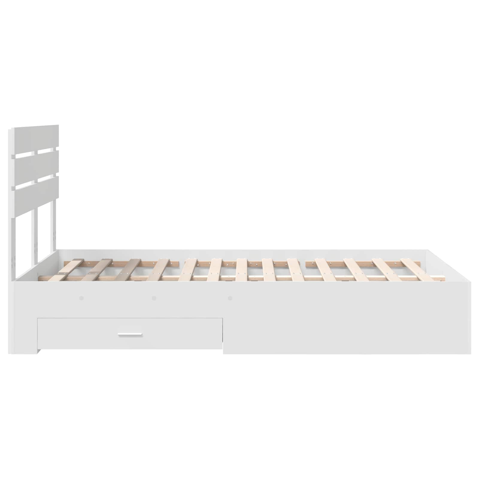 Dieses moderne Stauraumbettgestell ist genau das richtige für alle, die sowohl Stil als auch praktischen Platz mögen. Es wurde als Mittelpunkt für jedes schicke Schlafzimmer entworfen und bietet klare Linien sowie einen minimalistischen Look, der super zu zeitgemäßem Dekor passt. Der stylische Form ist einfach, bietet aber trotzdem viel Stauraum, damit du deinen Raum optimal nutzen kannst ? ganz ohne auf schickes Design zu verzichten. Hergestelltes Holz: Das Stauraumbettgestell besteht aus Holzwerkstoff, der Stabilität und zuverlässige Langlebigkeit bietet. Die stabile Holzkonstruktion sorgt für ein sicheres Fundament und gibt dem Bett gleichzeitig einen modernen Look, der den heutigen Designstandards entspricht. Integrierte Stauraumlösungen: Mit seinen eingebauten Schubladen aus Holzwerkstoff nutzt dieses Bett den Raum super effizient. Die praktischen Ziehmechanismen machen das Zugreifen ganz einfach und helfen dir, alles gut organisiert zu halten. Moderne ästhetische Gestaltung: Die klaren, einfachen Linien des Bettes entsprechen modernen Designprinzipien. Mit minimalistischen Details und einem Fokus auf Funktionalität fügt es sich perfekt in jede stilvolle Schlafzimmergestaltung ein, egal ob in der Stadt oder auf dem Land. Ergonomische Griffe: Ausgestattet mit stylischen Metallgriffen bieten die Schubladen einen einfachen und ergonomischen Betrieb. Diese modernen Griffe bringen sowohl Funktionalität als auch Stil und betonen die schlanke Gestaltung des Bettes. Einfache Pflege: Halte dein Bettgestell mit minimalem Aufwand sauber. Es lässt sich kinderleicht mit einem feuchten Tuch reinigen und bleibt so über Jahre hinweg ein attraktives Element in deinem Schlafzimmer.