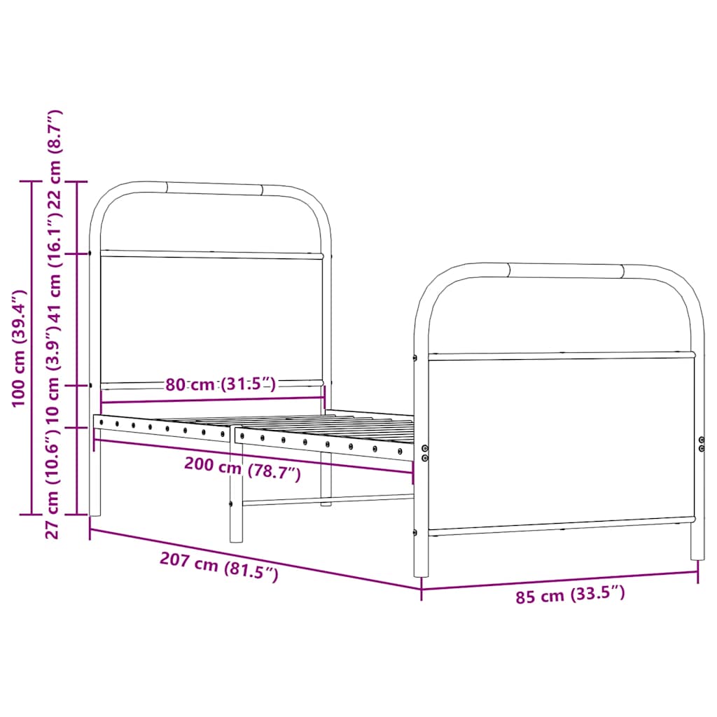 Wenn du auf der Suche nach einem robusten Bettgestell für dein Schlafzimmer bist, dann ist dieses klassische Bettgestell mit seinem eleganten und zeitlosen Design die perfekte Wahl für dich!Robuste Metallkonstruktion: Das Bettgestell ist aus Stahl gefertigt. Stahl ist ein außergewöhnlich hartes und starkes Material, das eine außergewöhnliche Robustheit und Stabilität bietet.Stabile und haltbare Beine: Dieses Bett wird von starken Beinen getragen, die für Stabilität, Sicherheit und Festigkeit sorgen.Praktisches Kopf- und Fußteil: Das Kopf- und Fußteil des Bettgestells halten die Matratze an ihrem Platz. Das Kopfteil bietet zudem eine ausgezeichnete Rückenunterstützung beim Lesen oder Fernsehen.Lattenrost für optimale Unterstützung: Der Bettrahmen ist mit einem Lattenrost ausgestattet, der deine Matratze stützt und atmungsaktiv hält.Gut zu wissen:Bei diesem Bett ist keine Matratze im Lieferumfang enthalten. Wir bieten verschiedene Matratzen an. Du kannst in unserem Shop nach einer passenden Matratze suchen.