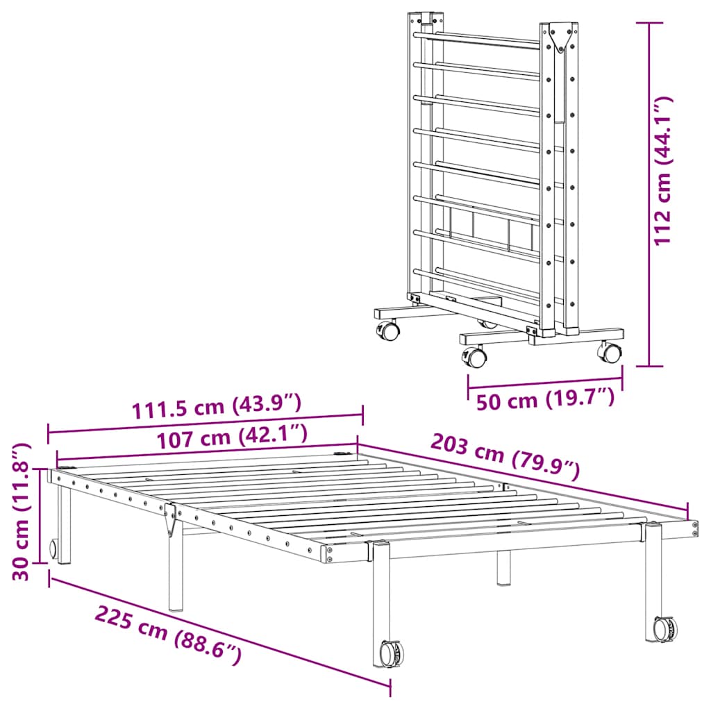 Wenn du auf der Suche nach einem robusten Bettgestell für dein Schlafzimmer bist, dann ist dieses Bettgestell mit seinem eleganten und zeitlosen Design die perfekte Wahl für dich! Robuste Konstruktion: Das Bettgestell ist aus Stahl gefertigt, einem äußerst langlebigen und starken Material, das für hervorragende Robustheit und Stabilität sorgt.Lattenrost und Beine aus Metall: Der Bettrahmen aus Metall ist mit einem Lattenrost und einem Mittelfuß ausgestattet, die deiner Matratze den nötigen Halt und Atmungsaktivität bieten.Zusammenklappbares Design: Dank seines faltbaren Designs lässt sich dieses Bettgestell bei Nichtgebrauch leicht zusammenklappen und platzsparend verstauen. Damit ist es ideal für kleine Zimmer oder enge Räume.Leicht zu bewegen: Dieses Bettgestell ist mit vier Rädern ausgestattet, sodass du es mühelos an einen beliebigen Ort deiner Wahl bewegen kannst.Zusätzlicher Stauraum: Zu deiner Bequemlichkeit bietet das Bett zusätzlichen Stauraum unter dem Bett, um deine Aufbewahrungsboxen außer Sichtweite zu halten. Gut zu wissen:Bei diesem Bett ist keine Matratze im Lieferumfang enthalten. Wir bieten jedoch eine große Auswahl an Matratzen an. Du kannst in unserem Shop nach einer passenden Matratze suchen.