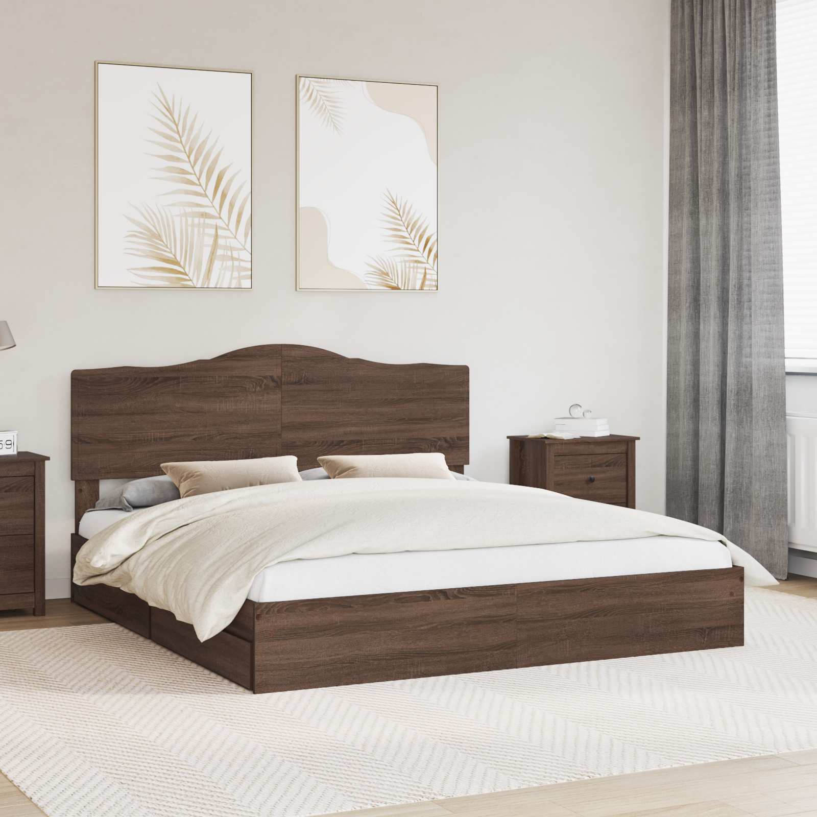 Dieses moderne Bettgestell hat ein schlichtes und funktionales Design, das perfekt in jedes moderne Schlafzimmer passt. Mit sanften Linien und einem minimalistischen Look ist es eine tolle Ergänzung für jeden Schlafbereich und bietet starke Unterstützung für Ihre Matratze. Die Holzwerkstoff-Konstruktion bringt einen Hauch von Eleganz in Ihren Raum und verspricht Langlebigkeit, ohne den Stil zu beeinträchtigen. Schlankes modernes Design: Es überzeugt durch schlichte Eleganz, klare Linien und Funktionalität. Das einfache Design ergänzt die vorhandene Schlafzimmerdekoration, ohne sie zu überladen, und bietet eine stilvolle Lösung für moderne Wohnräume. Holzwerkstoffstruktur: Hergestellt aus hochwertigem, robustem Holzwerkstoff, das für Langlebigkeit bekannt ist. Diese Materialwahl sorgt dafür, dass der Rahmen über Jahre stabile Unterstützung gibt und den alltäglichen Belastungen standhält, während er eine solide Basis für Ihre Matratze bildet. Plattform-Lattenrost: Mit einem stabilen Plattform-Lattenrahmen, der die Lücken zwischen den Latten minimiert. Das Design sorgt nicht nur für gleichmäßige Unterstützung Ihrer Matratze und erhöht den Komfort, sondern es eliminiert auch die Notwendigkeit eines Boxsprings und vereinfacht Ihr Bettsetup. Traditionelles Schubladendesign: Mit integrierten Ausziehschubladen, die praktischen Stauraum bieten. Diese Schubladen haben genug Platz, um Ihre Schlafzimmerutensilien ordentlich aufzubewahren, damit das Zimmer stets aufgeräumt bleibt. Einfache Pflege: Die Pflege dieses Bettgestells ist leicht ? einfach mit einem feuchten Tuch abwischen, um es sauber zu halten. Das Holz ist widerstandsfähig gegen Flecken und behält sein ursprüngliches Aussehen bei minimalem Aufwand.