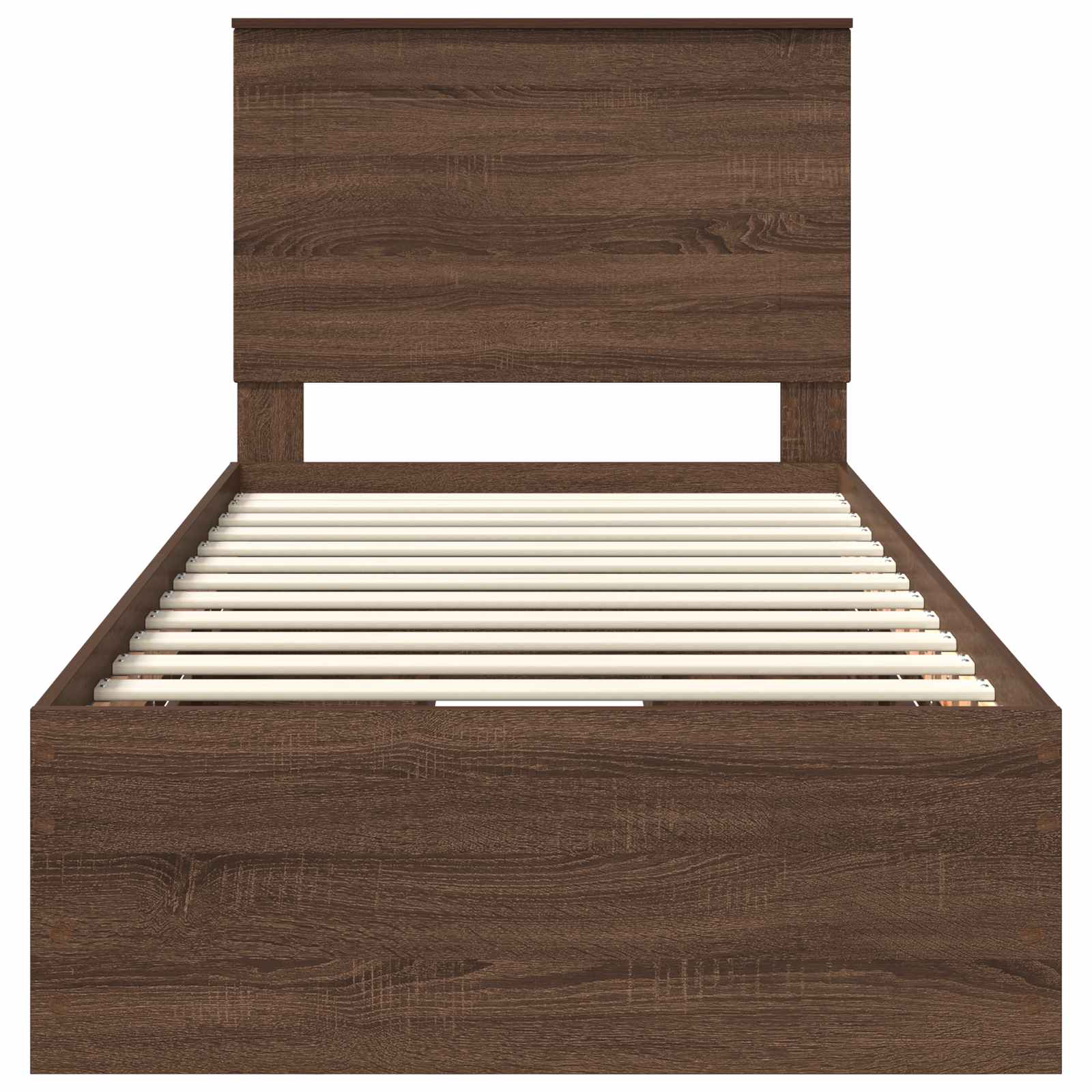 Dieses moderne Bettgestell ist eine schicke und stylische Ergänzung für jedes Schlafzimmer. Mit klaren, modernen Linien und aus strapazierfähigem, konstruiertem Holz gefertigt, vereint es Einfachheit und Eleganz für zeitgemäße Innenräume. Konstruierter Holzaufbau: Das Bettgestell ist komplett aus haltbarem, konstruiertem Holz gefertigt, was es sehr widerstandsfähig gegen Abnutzung macht. So behält es über die Jahre sein frisches Aussehen und bietet stabile Unterstützung für Ihre Matratze. Diskrete Stauraummöglichkeiten: Versteckte Schubladen bieten viel Platz für Ihre Sachen, ohne die klaren Linien des Bettes zu stören. Diese Fächer sind perfekt, um Ordnung zu halten und einen minimalistischen Look zu kreieren. Modernes, klares Design: Mit quadratischen Beinen und einem stabilen lattenförmigen Rahmen bringt das Bett eine moderne Note in Ihr Zimmer und harmoniert wunderbar mit verschiedenen Dekoren. Montage und Einrichtung: Dieses Bett kommt mit allem, was Sie für eine einfache Montage brauchen. Nur ein Schraubendreher ist nötig, und mit etwas Hilfe kann man schnell eine stabile Schlafbasis aufbauen. Einfache Pflegeempfehlungen: Das Bett lässt sich ganz einfach sauber halten. Ein feuchtes Tuch reicht, damit es frisch aussieht und in gutem Zustand bleibt.