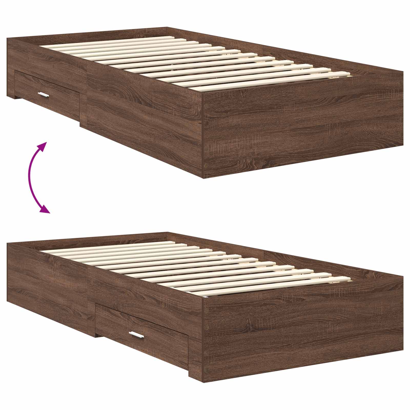 Dieses moderne Stauraumbett steht für einfache Eleganz mit klaren Linien und einem funktionalem Design, genau richtig für zeitgemäße Schlafzimmer. Es bietet viel Stauraum und verbindet Schönheit mit Nützlichkeit in deinem Schlafbereich. Holzwerkstoffstruktur: Das Bettgestell aus hochwertigem Holzwerkstoff bietet zuverlässige Stabilität und Langlebigkeit. Die glatte Oberfläche fügt sich perfekt in moderne Designs ein und hält das Aussehen über die Zeit makellos. Praktische Schubladen: Die herkömmlichen Schubladen aus demselben robusten Material bieten viel Stauraum, ohne den Stil zu schmälern. Sie unterstützen eine ordentliche Aufbewahrung und verbessern die Funktionalität deines Raums. Verstellbares Fußteil: Dieses Bettgestell hat ein manuell einstellbares Fußteil, das sich ganz nach deinem Komfort anpassen lässt und in vier Positionen verstellbar ist. Moderne Griffe: Die silbernen Metallgriffe sind nicht nur praktisch, sondern geben dem Bett auch einen eleganten Touch und erleichtern den Zugang zu Schubladen und Fächern. Einfache Reinigung: Halte den Rahmen in Form, indem du ihn einfach mit einem feuchten Tuch abwischst. So bleibt das Bett frisch und neu.