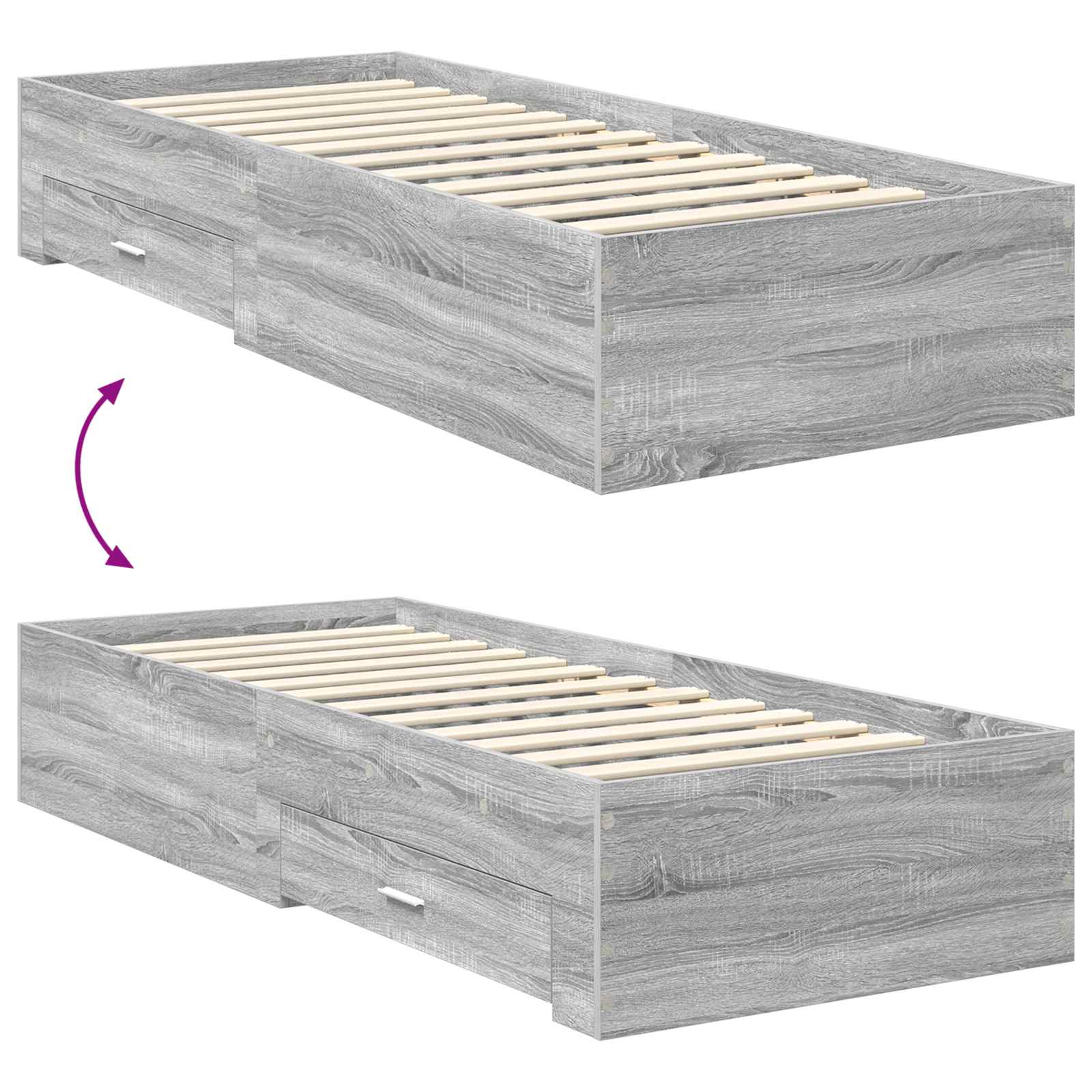 Dieses moderne Stauraumbett steht für einfache Eleganz mit klaren Linien und einem funktionalem Design, genau richtig für zeitgemäße Schlafzimmer. Es bietet viel Stauraum und verbindet Schönheit mit Nützlichkeit in deinem Schlafbereich. Holzwerkstoffstruktur: Das Bettgestell aus hochwertigem Holzwerkstoff bietet zuverlässige Stabilität und Langlebigkeit. Die glatte Oberfläche fügt sich perfekt in moderne Designs ein und hält das Aussehen über die Zeit makellos. Praktische Schubladen: Die herkömmlichen Schubladen aus demselben robusten Material bieten viel Stauraum, ohne den Stil zu schmälern. Sie unterstützen eine ordentliche Aufbewahrung und verbessern die Funktionalität deines Raums. Verstellbares Fußteil: Dieses Bettgestell hat ein manuell einstellbares Fußteil, das sich ganz nach deinem Komfort anpassen lässt und in vier Positionen verstellbar ist. Moderne Griffe: Die silbernen Metallgriffe sind nicht nur praktisch, sondern geben dem Bett auch einen eleganten Touch und erleichtern den Zugang zu Schubladen und Fächern. Einfache Reinigung: Halte den Rahmen in Form, indem du ihn einfach mit einem feuchten Tuch abwischst. So bleibt das Bett frisch und neu.