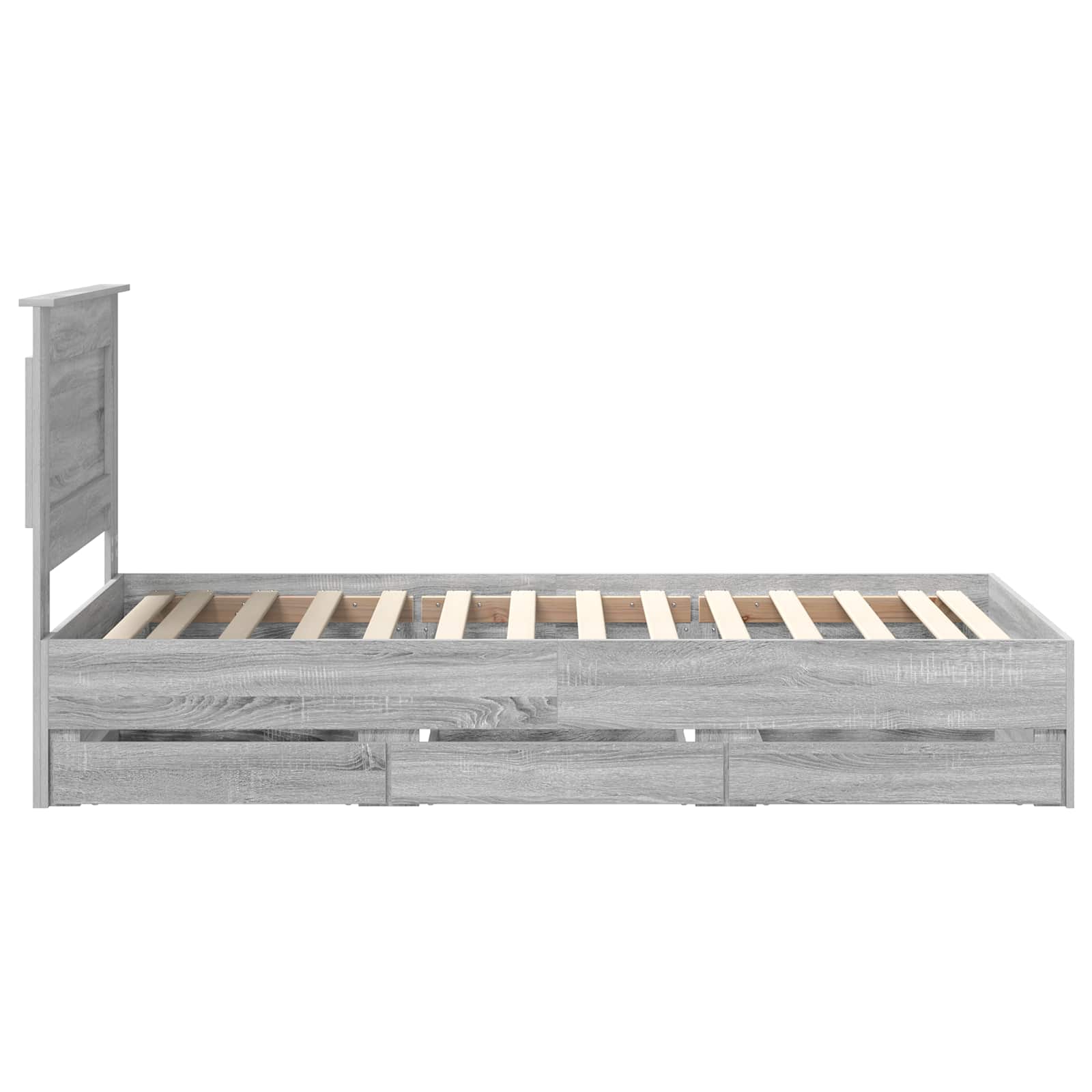 Dieses moderne Bettgestell bringt Eleganz mit einem schlanken, minimalistischen Design für zeitgemäße Räume. Es hat eine schlanke Form, die sich ganz einfach in jeden Schlafzimmerstil integriert. Hauptsächlich aus Holzwerkstoff gemacht, verbindet es Stil mit Langlebigkeit und ist eine luxuriöse, trotzdem praktische Ergänzung für dein Zuhause. Die stabile Lattenbasis sorgt dafür, dass deine Matratze immer optimal unterstützt wird und du jede Nacht gut schlafen kannst. Robustes Holzwerkstoff: Hergestellt aus hochwertigem Holzwerkstoff, kombiniert dieses Bettgestell Qualität und Stil. Es ist abriebfest und macht lange Freude, ohne dass es an visueller Anziehungskraft verliert, und unterstützt Standardmatratzen im perfekten Maße. Integriertes Kopfteil: Das Kopfteil aus Holzwerkstoff sorgt für einen einheitlichen Look. Es sieht schick aus und bietet auch Komfort beim stressfreien Sitzen und Lesen. Versteckte Schubladen: Dieses Bettgestell hat praktische, versteckte Schubladen, die viel Stauraum bieten. Ideal für kleine Räume, wo man clevere Lösungen braucht. Modernes Design: Einfachheit trifft auf Funktionalität ? das Bettgestell hat klare Linien und quadratische Beine, perfekt für minimalistische Schlafzimmer. Es steht frei im Raum und braucht keine Wandstütze, was es sehr flexibel macht. Einfache Pflege: Dieses Bettgestell hält man ganz leicht in Schuss. Einfach mit einem feuchten Tuch abwischen, um Staub zu entfernen. Es passt super in jedes moderne Schlafzimmer und bleibt einladend und schick, wie am ersten Tag.
