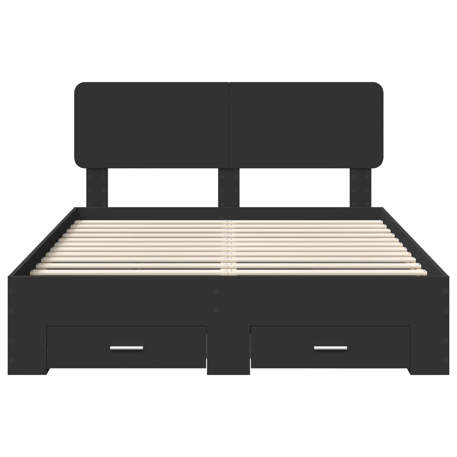Dieses moderne Bettgestell bringt Funktion und Stil perfekt zusammen und bietet eine schicke, zeitgemäße Lösung für dein Schlafzimmer. Mit seinem eleganten Design, klaren Linien und minimalen Verzierungen passt es super zu modernem Dekor. Ideal für alle, die Stil und Praktikabilität schätzen, bietet dieses Bettgestell durch die Schubladen viel Stauraum, perfekt für kleine Räume oder organisiertes Wohnen. Holzwerkstoff-Struktur Hergestellt aus hochwertigem Holzwerkstoff, sorgt dieses Bettgestell für Stabilität und Langlebigkeit. Die robuste Bauweise hält dem täglichen Gebrauch locker stand und passt zu jeder zeitgenössischen Schlafzimmergestaltung, so dass es lange im Raum bleibt. Integrierte Stauraumschubladen Unser modernes Bettgestell hat Schubladen aus dem gleichen Holzwerkstoff und bietet viel Platz für Bettwäsche, Kleidung oder zusätzliche Kissen. Dieses Design nutzt den Platz optimal und hält dein Schlafzimmer ordentlich, ohne den Stil zu verlieren. Rigid Lattenrost Das Rigid Lattenrost aus stabilen Holzlatten bietet zuverlässige Unterstützung für deine Matratze, verbessert den Komfort und die Atmungsaktivität. Ideal für alle, die eine stabile Grundlage bevorzugen, sorgt dieses Setup für erholsame Nächte. Schickes Kopfteil-Design Das Bett mit Holzwerkstoff-Kopfteil hebt die klaren Linien und den modernen Look hervor. Es dient als bequeme Rückenlehne zum Lesen oder Entspannen und bringt eine praktische Dimension in deine Schlafzimmergestaltung. Problemloses Wartung Wische das Bettgestell einfach mit einem feuchten Tuch ab, um den coolen Look zu erhalten. Mit minimalem Pflegeaufwand bleibt deine Investition über Jahre frisch und einladend.