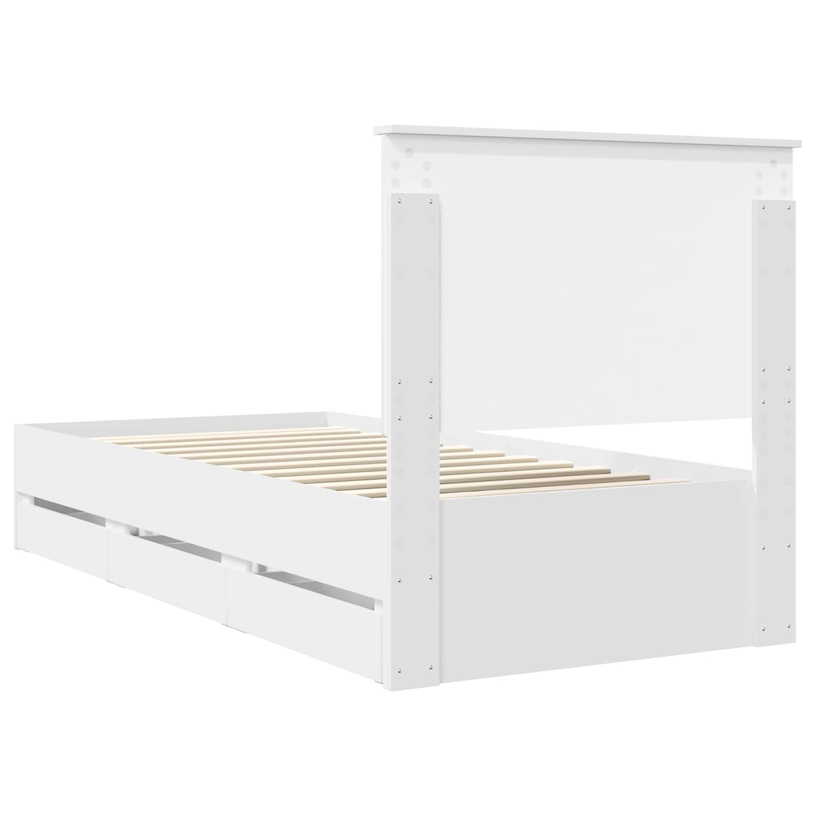 Dieses moderne Bettgestell ist eine schicke und stylische Ergänzung für jedes Schlafzimmer. Mit klaren, modernen Linien und aus strapazierfähigem, konstruiertem Holz gefertigt, vereint es Einfachheit und Eleganz für zeitgemäße Innenräume. Konstruierter Holzaufbau: Das Bettgestell ist komplett aus haltbarem, konstruiertem Holz gefertigt, was es sehr widerstandsfähig gegen Abnutzung macht. So behält es über die Jahre sein frisches Aussehen und bietet stabile Unterstützung für Ihre Matratze. Diskrete Stauraummöglichkeiten: Versteckte Schubladen bieten viel Platz für Ihre Sachen, ohne die klaren Linien des Bettes zu stören. Diese Fächer sind perfekt, um Ordnung zu halten und einen minimalistischen Look zu kreieren. Modernes, klares Design: Mit quadratischen Beinen und einem stabilen lattenförmigen Rahmen bringt das Bett eine moderne Note in Ihr Zimmer und harmoniert wunderbar mit verschiedenen Dekoren. Montage und Einrichtung: Dieses Bett kommt mit allem, was Sie für eine einfache Montage brauchen. Nur ein Schraubendreher ist nötig, und mit etwas Hilfe kann man schnell eine stabile Schlafbasis aufbauen. Einfache Pflegeempfehlungen: Das Bett lässt sich ganz einfach sauber halten. Ein feuchtes Tuch reicht, damit es frisch aussieht und in gutem Zustand bleibt.