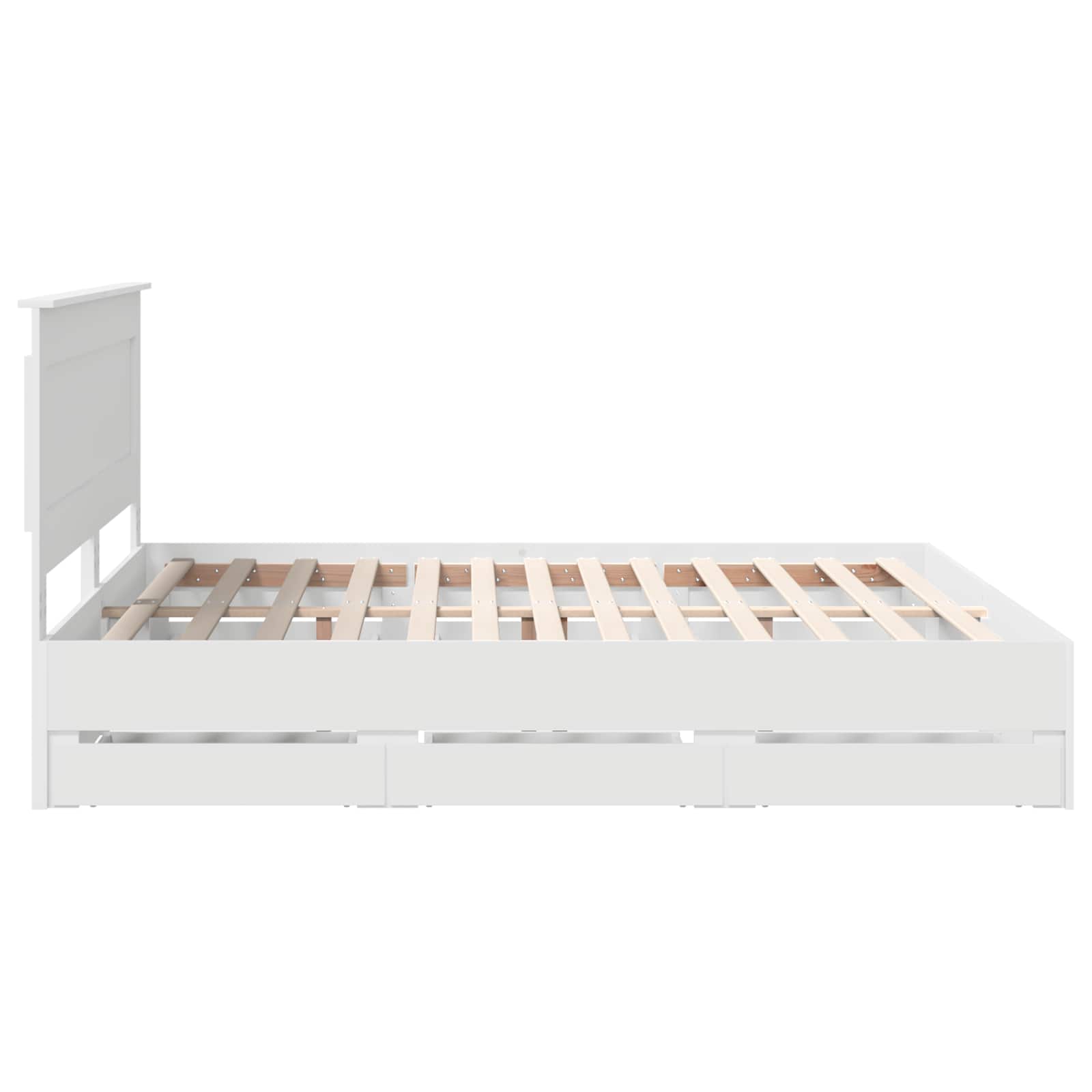 Dieses moderne Bettgestell bringt Eleganz mit einem schlanken, minimalistischen Design für zeitgemäße Räume. Es hat eine schlanke Form, die sich ganz einfach in jeden Schlafzimmerstil integriert. Hauptsächlich aus Holzwerkstoff gemacht, verbindet es Stil mit Langlebigkeit und ist eine luxuriöse, trotzdem praktische Ergänzung für dein Zuhause. Die stabile Lattenbasis sorgt dafür, dass deine Matratze immer optimal unterstützt wird und du jede Nacht gut schlafen kannst. Robustes Holzwerkstoff: Hergestellt aus hochwertigem Holzwerkstoff, kombiniert dieses Bettgestell Qualität und Stil. Es ist abriebfest und macht lange Freude, ohne dass es an visueller Anziehungskraft verliert, und unterstützt Standardmatratzen im perfekten Maße. Integriertes Kopfteil: Das Kopfteil aus Holzwerkstoff sorgt für einen einheitlichen Look. Es sieht schick aus und bietet auch Komfort beim stressfreien Sitzen und Lesen. Versteckte Schubladen: Dieses Bettgestell hat praktische, versteckte Schubladen, die viel Stauraum bieten. Ideal für kleine Räume, wo man clevere Lösungen braucht. Modernes Design: Einfachheit trifft auf Funktionalität ? das Bettgestell hat klare Linien und quadratische Beine, perfekt für minimalistische Schlafzimmer. Es steht frei im Raum und braucht keine Wandstütze, was es sehr flexibel macht. Einfache Pflege: Dieses Bettgestell hält man ganz leicht in Schuss. Einfach mit einem feuchten Tuch abwischen, um Staub zu entfernen. Es passt super in jedes moderne Schlafzimmer und bleibt einladend und schick, wie am ersten Tag.