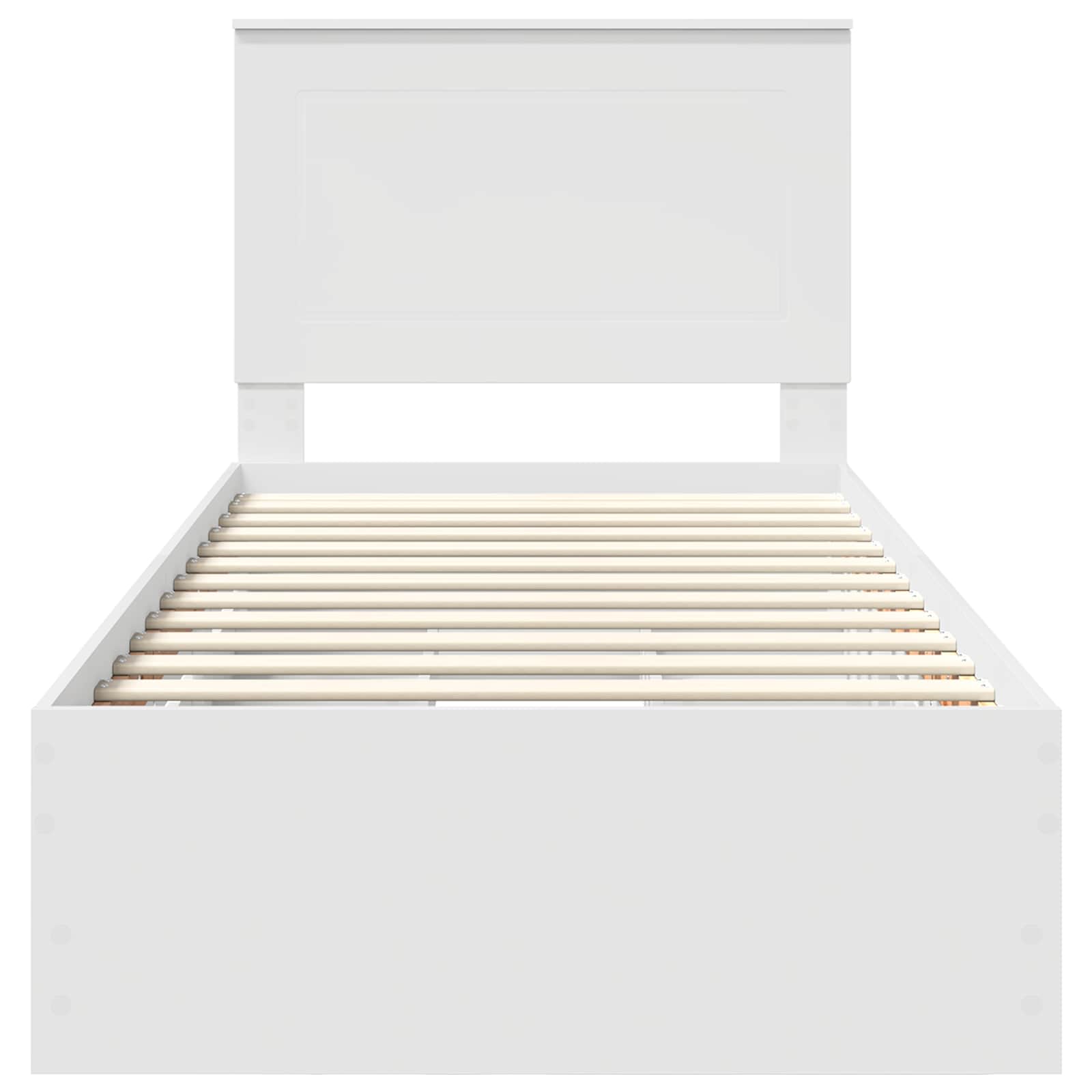 Dieses moderne Bettgestell ist eine schicke und stylische Ergänzung für jedes Schlafzimmer. Mit klaren, modernen Linien und aus strapazierfähigem, konstruiertem Holz gefertigt, vereint es Einfachheit und Eleganz für zeitgemäße Innenräume. Konstruierter Holzaufbau: Das Bettgestell ist komplett aus haltbarem, konstruiertem Holz gefertigt, was es sehr widerstandsfähig gegen Abnutzung macht. So behält es über die Jahre sein frisches Aussehen und bietet stabile Unterstützung für Ihre Matratze. Diskrete Stauraummöglichkeiten: Versteckte Schubladen bieten viel Platz für Ihre Sachen, ohne die klaren Linien des Bettes zu stören. Diese Fächer sind perfekt, um Ordnung zu halten und einen minimalistischen Look zu kreieren. Modernes, klares Design: Mit quadratischen Beinen und einem stabilen lattenförmigen Rahmen bringt das Bett eine moderne Note in Ihr Zimmer und harmoniert wunderbar mit verschiedenen Dekoren. Montage und Einrichtung: Dieses Bett kommt mit allem, was Sie für eine einfache Montage brauchen. Nur ein Schraubendreher ist nötig, und mit etwas Hilfe kann man schnell eine stabile Schlafbasis aufbauen. Einfache Pflegeempfehlungen: Das Bett lässt sich ganz einfach sauber halten. Ein feuchtes Tuch reicht, damit es frisch aussieht und in gutem Zustand bleibt.