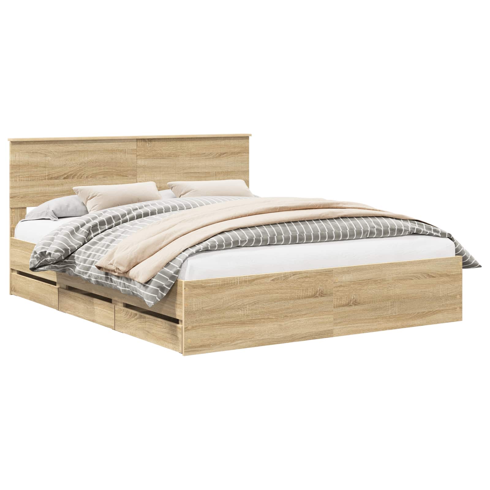 Dieser moderne Bettrahmen kombiniert Stil mit Funktion und ist eine coole Ergänzung für jedes Schlafzimmer. Er begeistert mit klaren Linien und wenig Schnickschnack und passt super zu verschiedenen Geschmackrichtungen. Perfekt für die, die einen frischen und modernen Look wollen, ist der Bettrahmen wie eine Leinwand für kreative Bettwäsche, egal ob mutig oder zurückhaltend. Holzwerkstoffe: Unser Bettrahmen besteht aus starken Holzwerkstoffen, die sogar in stark genutzten Räumen gut gegen Abnutzung bestehen. Das Material sieht nicht nur toll aus, sondern bietet auch eine stabile Basis für guten Schlaf. Versteckte Stauraumlösungen: Er hat clevere Schubladen, die helfen, dein Zimmer ordentlich zu halten. Diese Fächer sind perfekt für alle, die auf gutes Aussehen und praktische Lösungen wert legen und helfen dabei, die Funktionalität des Bettrahmens zu verbessern. Einfache slatted Rahmen: Der Rahmen hat ein festes slatted Design mit Holzlatten, die super Unterstützung bieten. So ist der Rahmen eine tolle Basis für Matratzen und sorgt für gute Luftzirkulation, damit dein Schlaf frisch bleibt. Stabilitätsdesign: Die stabilen, quadratischen Beine bieten sicheren Halt. Ihr modernes Design passt perfekt zum minimalistischen Look des Bettes und verbessert die Stabilität ohne Kompromisse beim Stil. Pflegeleicht: Einfach mit einem feuchten Tuch abwischen, um ihn in Top-Zustand zu halten. Dieses Möbelstück macht die Pflege leicht und sorgt dafür, dass seine Eleganz auch über die Zeit bleibt.