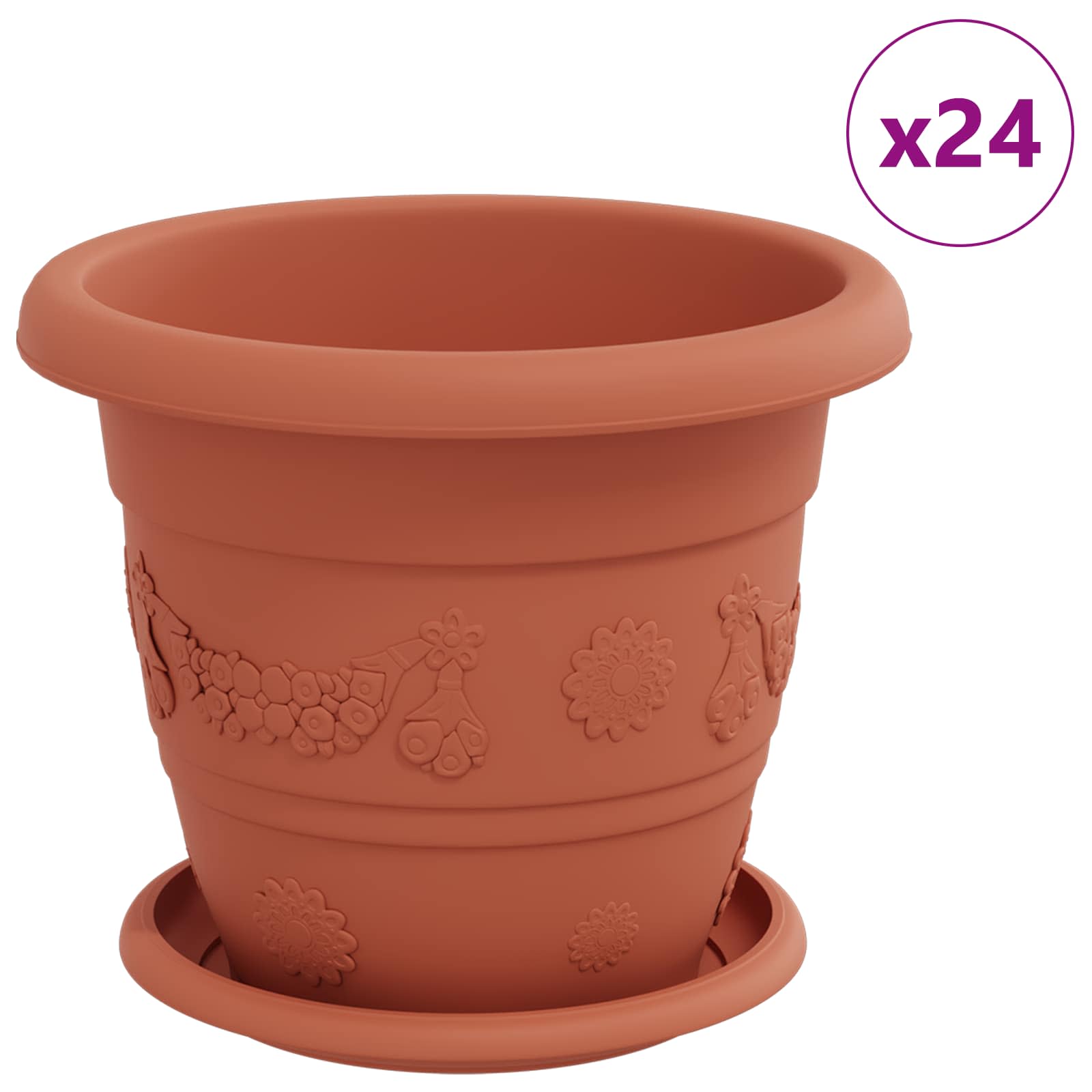 ARDEBO.de - Blumentöpfe 24 pcs Ziegelrot Ø 26 x 21,5 cm Kunststoff