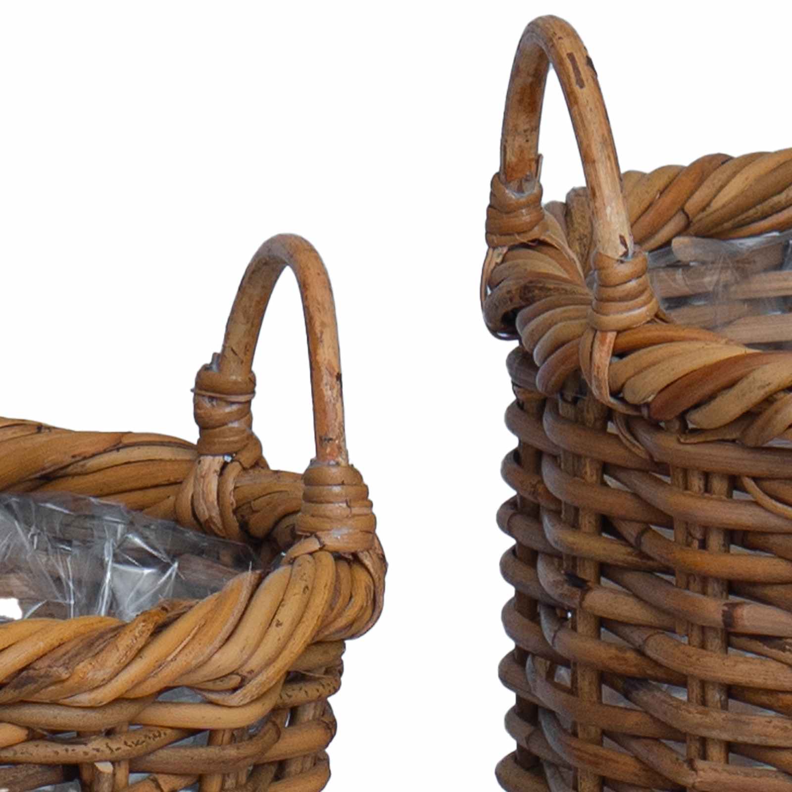 Dieses Set runder Körbe mit Griffen ist eine coole und dekorative Ergänzung für jedes Zuhause. Sie sind perfekt für drinnen und draußen und haben eine schöne, gewebte Struktur. Ob für praktische Aufbewahrung oder tolle Deko ? diese Körbe passen mit ihrem neutralen Look in verschiedene Einrichtungsstile und machen Wohnzimmer, Terrassen oder Gärten noch schöner. Die praktischen, faltbaren Griffe sorgen dafür, dass du sie ganz einfach tragen und flexibel nutzen kannst. Elegante gewebte Textur: Die Körbe haben ein hübsches gewebtes Design aus Kubu-Rattan. Ihre feine Textur bringt Stil in jeden Raum und schafft eine warme, einladende Atmosphäre. Das Rattan-Material ist nicht nur schön, sondern sorgt auch dafür, dass die Körbe langlebig sind. Handgefertigte Handwerkskunst: Jeder Korb wird sorgfältig von talentierten Handwerkern hergestellt, damit jedes Stück besonders und qualitativ hochwertig ist. Diese handgefertigten Details verleihen den Körben einen individuellen Charme und bringen einen Hauch von Kunst in dein Zuhause. Faltbare Griffe: Um einfach transportieren und aufbewahren zu können, haben die Körbe faltbare Griffe. Diese praktisch designten Griffe sind wie ein ?D? geformt und machen das Tragen der Körbe durch dein Zuhause oder deinen Garten super einfach. Vielseitige Dimensionen: Es gibt sie in drei Größen, was dir viele Möglichkeiten für deine Aufbewahrung gibt. Perfekt, um Unordnung zu organisieren oder deine Lieblingspflanzen zu zeigen, passen die verschiedenen Größen in jede Situation. Einfach zu pflegen: Diese Körbe sind so gemacht, dass du wenig Aufwand damit hast. Wisch sie einfach mit einem trockenen Tuch ab; aggressive Chemikalien sind nicht nötig, um ihre Schönheit zu erhalten und die Lebensdauer zu verlängern.