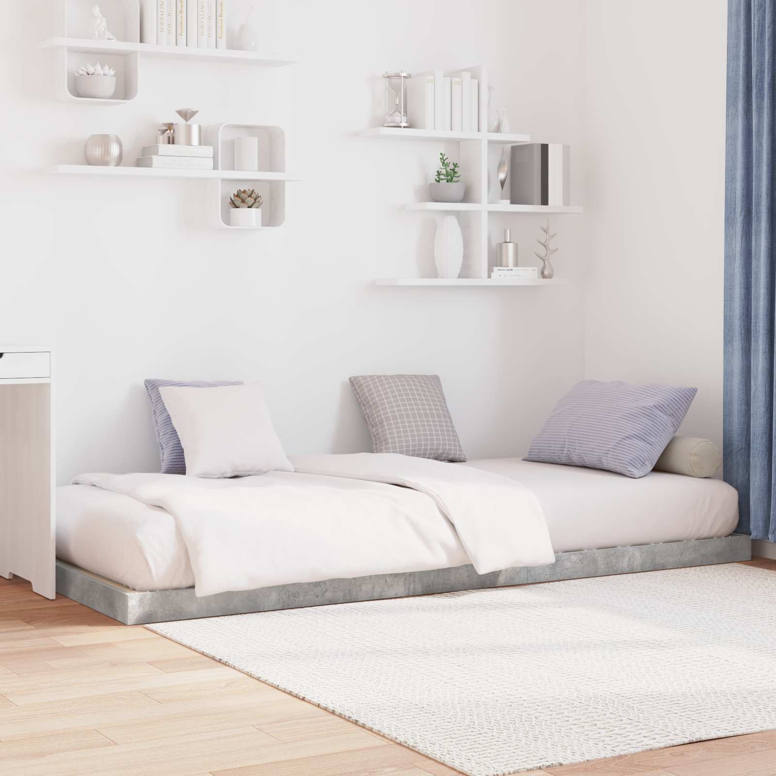 Dieser moderne Futonbett-Rahmen vereint Einfachheit und Funktionalität und fügt sich problemlos in jede Wohnkultur ein. Hergestellt aus Holzwerkstoff, bringt er klare Linien, die das minimalistische Design unterstreichen. Ideal für verschiedene Schlafzimmerkonzepte, ist er eine schicke und praktische Lösung, sei es unter einem Loftbett oder als eigenständiges Möbelstück. Die unauffällige Form setzt einen stilvollen Akzent im Raum und wirkt als vielseitiger Hintergrund für unterschiedliche Einrichtungsstile, ob modern oder traditionell. Holzwerkstoff-Konstruktion Dieses Bettgestell ist aus robustem Holzwerkstoff gefertigt, der für den Alltag gedacht ist und trotzdem elegant aussieht. Materialwahl sorgt für eine Mischung aus Stärke und Stil, bietet zuverlässigen Halt und schickes Design für moderne Innenräume. Unterstützendes Latten-Design Mit integrierten Latten sorgt dieses Bettgestell für gleichmäßige Unterstützung und Luftzirkulation, was den Komfort und die Lebensdauer deiner Matratze erhöht. Vielseitige Platzierung Ideal zum Platzieren unter Loftbetten, maximiert dieses Gestell den Raum, ohne auf Stil und Komfort zu verzichten. Es passt sich jeder Schlafzimmergestaltung an und ist perfekt für kleine Wohnungen und große Häuser. Minimalistische Ästhetik Mit klaren Linien verstärkt das Bettgestell die visuelle Anziehungskraft jedes Raumes. Dieser minimalistische Ansatz ergänzt verschiedene Einrichtungsstile, von modern bis klassisch, und schafft eine harmonische Ästhetik. Praktischer Aufbau Der Zusammenbau mit einfachen Werkzeugen geht schnell und einfach. Es unterstützt zahlreiche Matratzentypen und sorgt dafür, dass du lange Freude daran hast.