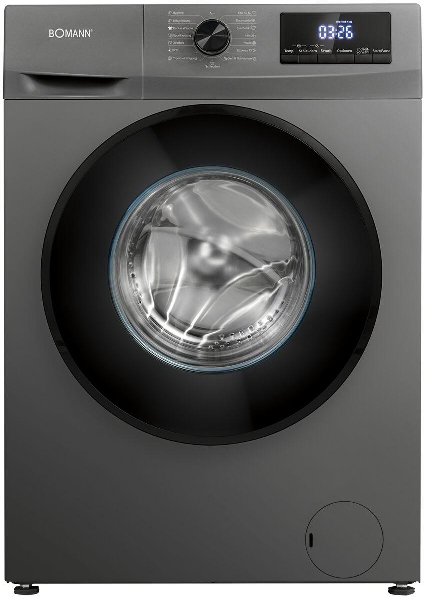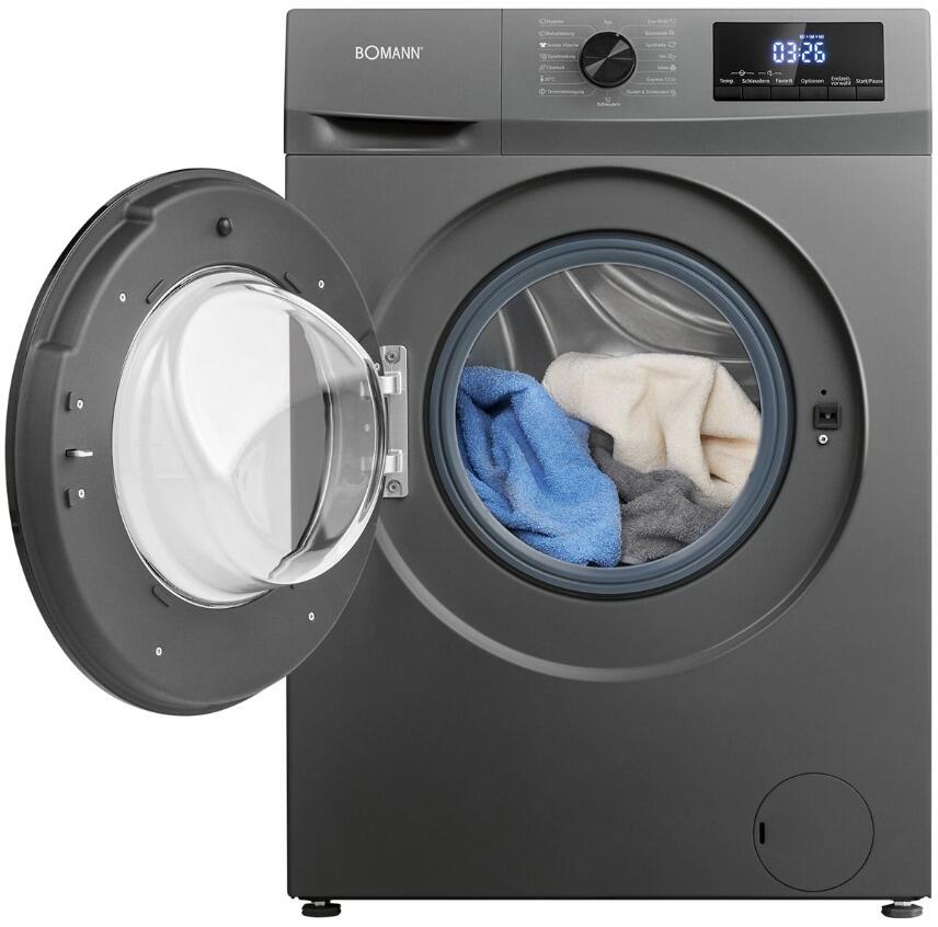 Bomann WA 7175 7kg Frontlader Waschmaschine, 60 cm breit, 1400 U/Min, Restlaufzeitanzeige, Kindersicherung, Reversierautomatik, Titan schwarz (771751)