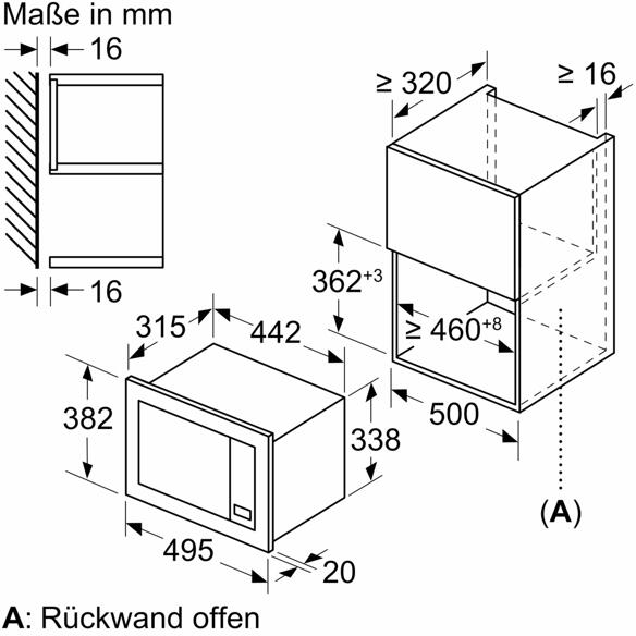 - Nischenmaße (HxBxT): 365 mm x 460 mm x 320 mm