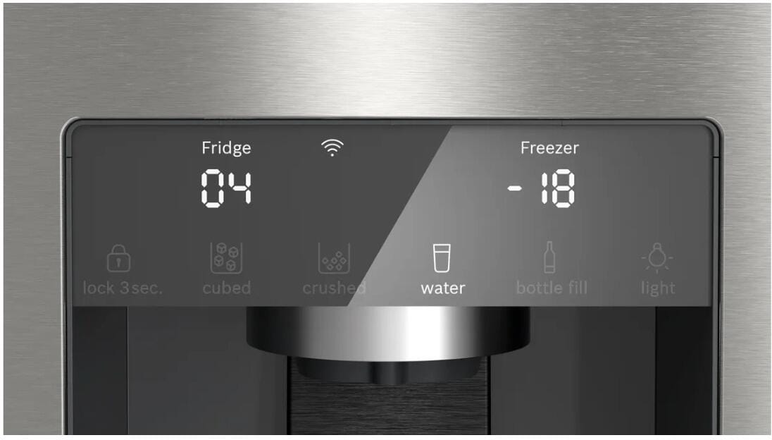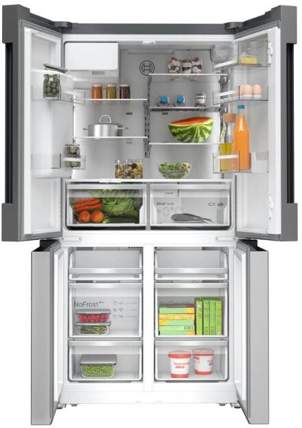 Bosch KFD96APEA Serie 6 Stand Kühl-Gefrierkombination, 90,5 cm breit, 574 L, Full No Frost, Eis-/Wasserspender, Wassertank, EcoMode, Home Connect, Gebürsteter Stahl AntiFingerprint