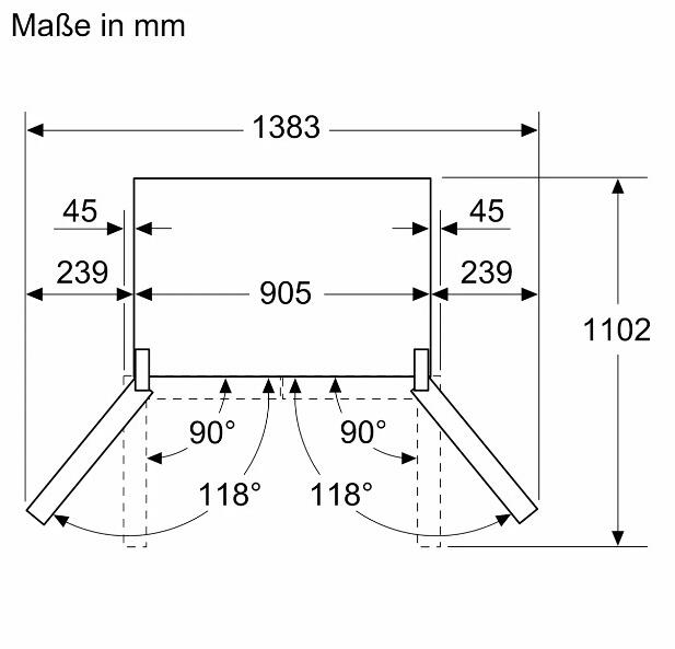 - Abmessungen des Gerätes (H x B x T) 1830x905x731 mm