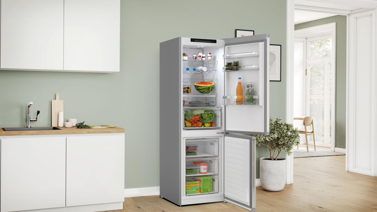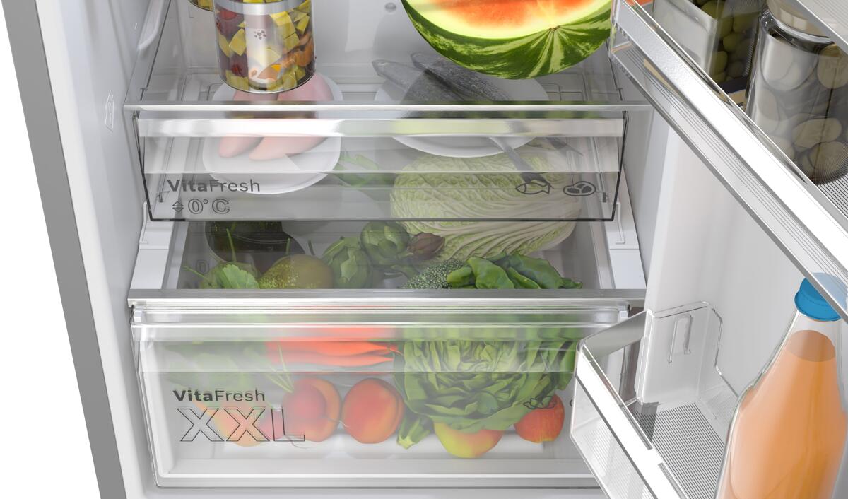 Bosch KGN362LAF Serie 4 Stand Kühl-Gefrierkombination, 60 cm breit, 321 L, Total No Frost, Vitafresh, Super Kühlen, Super Gefrieren, Edelstahloptik