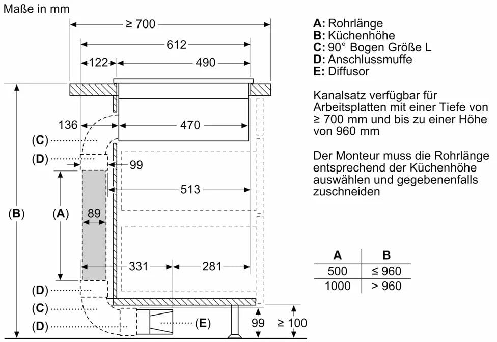 - Minimale Arbeitsplattenstärke: 16 mm