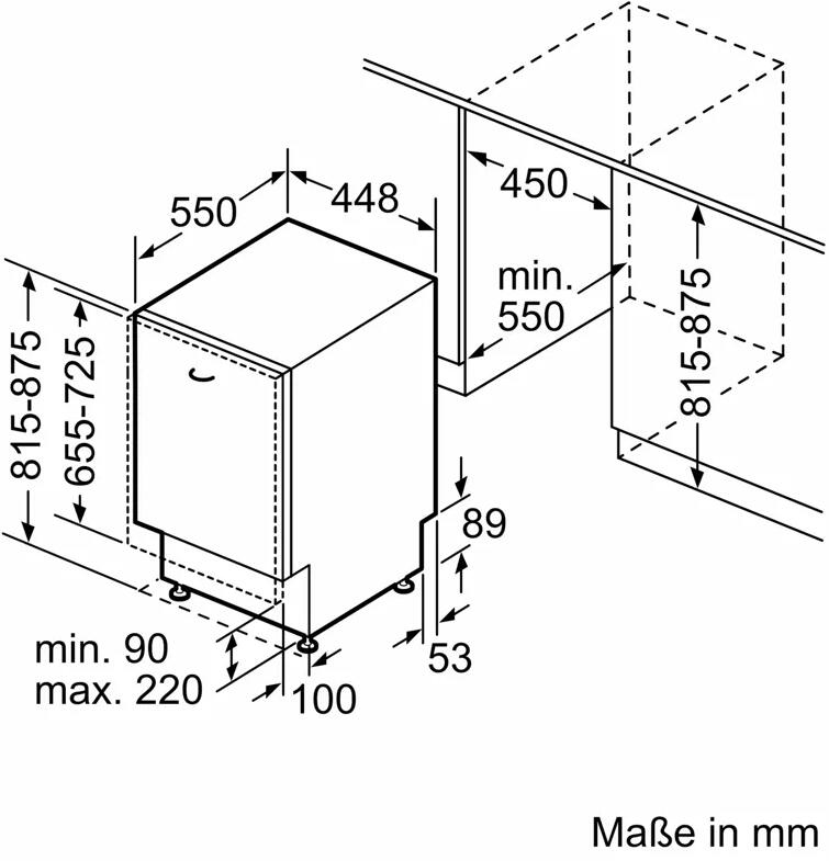 - Abmessungen des Gerätes (H x B x T): 815 x 448 x 550 mm