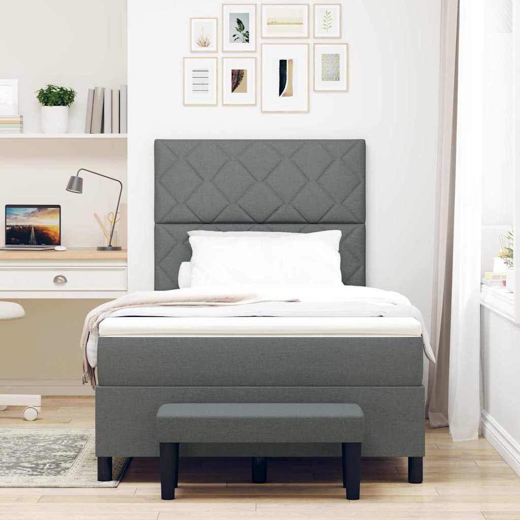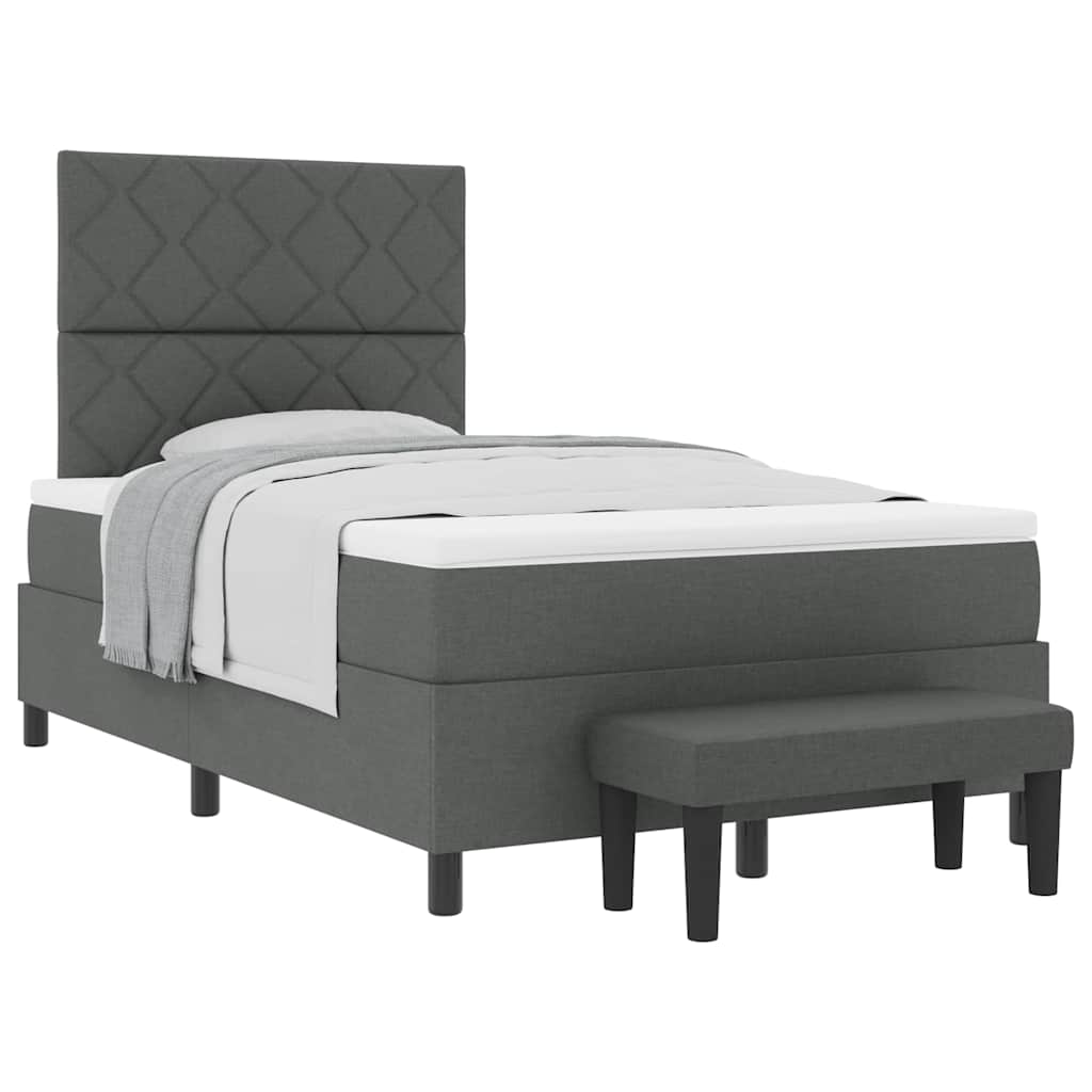 Dieses Boxspringbett ist genau das Richtige fr Erwachsene, die beim Schlafen Komfort und Stil haben wollen. Der schicke dunkelgraue Stoff bringt einen modernen Look in dein Zimmer und macht es zu einer echten Schlaflsung und einem Blickfang. Mit der Matratze und dem Topper inklusive, bist du nach einem langen Tag gemtlich und entspannt. Ob im Gstezimmer oder in deinem eigenen Raum, dieses Bett passt einfach berall. Freu dich auf bequeme Nchte und stylische Tage mit diesem Mbelstck. Robuste Materialien sorgen dafr, dass es viele Jahre hlt - perfekt fr alle, die in gute Mbel investieren mchten. Mach dein Schlafzimmer zu deinem Ruheort mit diesem tollen Boxspringbett.