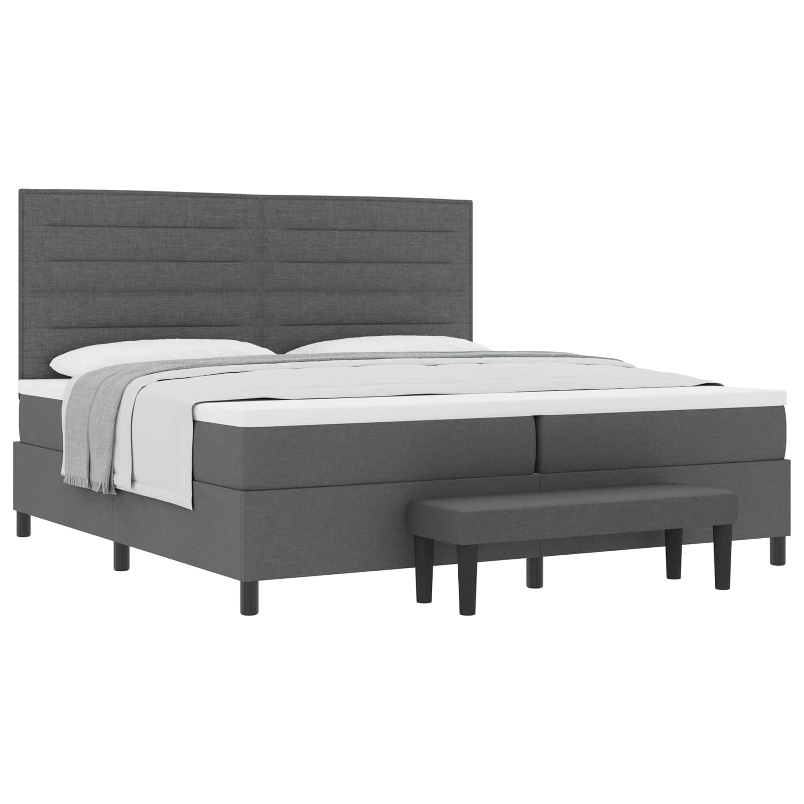 Dieses Boxspringbett kombiniert schlankes Design mit gemütlichem Komfort und ist die optimale Wahl für jedes Schlafzimmer für Erwachsene. Der stylische dunkelgraue Stoff und der stabile Stahlrahmen geben ihm einen modernen Look, damit du super schlafen kannst und dein Wohnraum dadurch total aufgewertet wird. Zeitgenössischer Stil: Der dunkelgraue Stoffbezug bringt einen modernen Touch, der zu unterschiedlichen Einrichtungsstilen passt ? ein Must-Have für jedes angesagte Schlafzimmer. Starker Halt: Die hochwertige Matratze und der bequeme Topper garantieren ein super Schlaferlebnis. Die Matratze passt sich deinem Körper an und sorgt für perfekte Ausrichtung und Komfort. Robuste Haltbarkeit: Hergestellt aus hochwertigen Materialien, kann dieses Bett bis zu 300 kg tragen und bietet Stabilität und Langlebigkeit für jahrelangen Spaß. Keine Montage erforderlich: Es kommt komplett zusammengebaut, also kannst du es ganz einfach einrichten ? keine Werkzeuge oder Anleitungen nötig. Vielseitige Nutzung: Perfekt für verschiedene Schlafzimmerstile, verbindet dieses Bett Ästhetik mit Praktikabilität, sodass dein Raum gut aussieht und gleichzeitig für Erwachsene komfortabel bleibt.