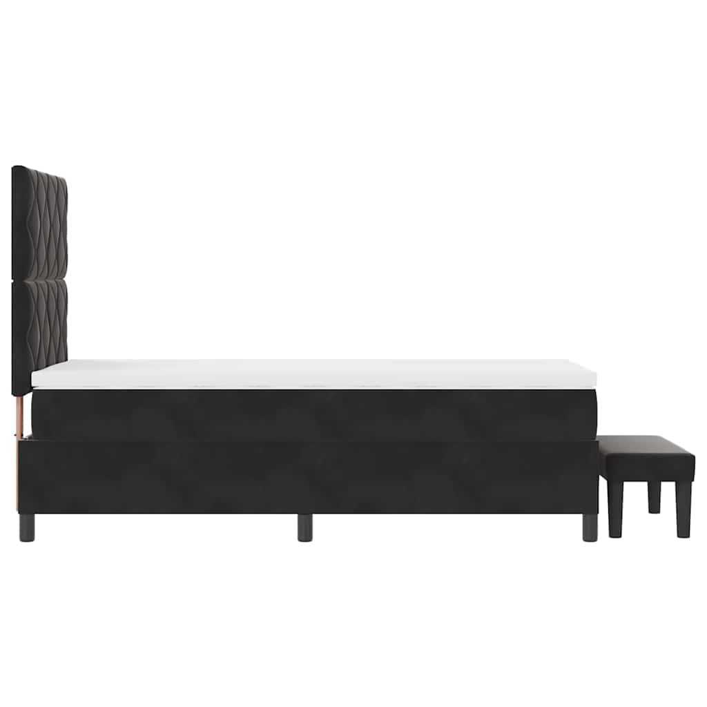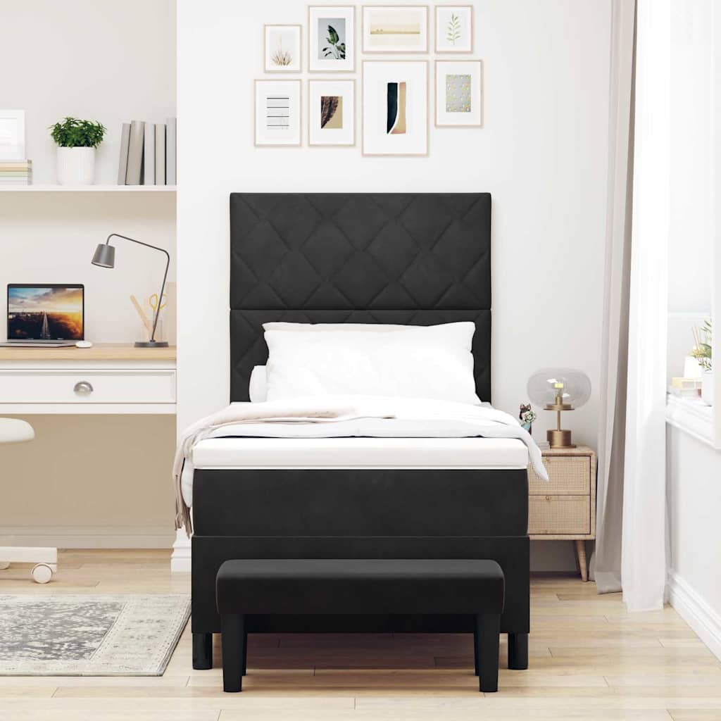 Dieses coole Boxspringbett ist die beste Schlaflösung für Erwachsene, die Komfort und Style wollen. Mit seiner schlichten schwarzen Samtpolsterung strahlt es moderne Eleganz aus und ist der perfekte Ort zum Chillen und für einen erholsamen Schlaf. Ästhetische Anziehungskraft: Die Kombination aus schwarzem Samt und Diamantblockdesign gibt jeder Deko einen modernen Akzent. Unterstützender Komfort: Die Schaumstoffmatratze und der Topper sorgen für einen bequemen und unterstützenden Schlaf, wodurch du schnell zur Ruhe kommen kannst. Praktisches Design: Die passende Bank sieht nicht nur toll aus; sie bietet auch Platz zum Sitzen oder um deine Klamotten abzulegen. Easy Montage: Wurde für einen einfachen Aufbau entworfen ? zwei Leute und einfache Werkzeuge genügen, um dir die Sache einfach zu machen. Platzsparend: Die kompakte Größe von 100 x 200 cm ist perfekt für die Einzelbenutzung oder um Gäste unterzubringen.