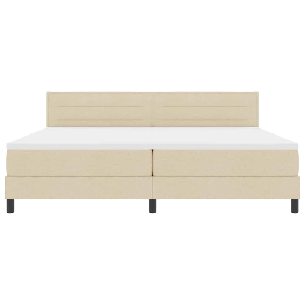 Dieses Boxspringbett bringt modernen Stil und praktisches Design zusammen. Ideal für große Schlafzimmer oder Gästezimmer. Die cremefarbene Stoffoberfläche und das passende Kopfteil schaffen eine ruhige Atmosphäre, und die solide Bauweise sorgt für eine erholsame Nachtruhe. u003culu003eu003cliu003eModernes Design: Das schlanke Design von diesem Bett passt perfekt in moderne Wohnungen und ist dabei nicht zu übertrieben.u003c/liu003eu003cliu003eBequeme Bettwäsche: Die Matratze und der Topper bieten dir großartige Polsterung für einen erholsamen Schlaf.u003c/liu003eu003cliu003eRobuste Bauweise: Aus hochwertigem Holz gefertigt, unterstützt der stabile Rahmen bis zu 300 kg und sorgt für zuverlässige Unterstützung beim Schlafen.u003c/liu003eu003cliu003eGeräumiges Design: Ideal für Schlafzimmer oder Gästezimmer, bietet dieses Bett ausreichend Platz für zwei Personen und macht es zu einer praktischen Wahl für jedes Zuhause.u003c/liu003eu003cliu003eEinfache Pflege: Ein einfaches Abwischen mit einem sauberen, trockenen Tuch hält es frisch.u003c/liu003eu003c/ulu003e