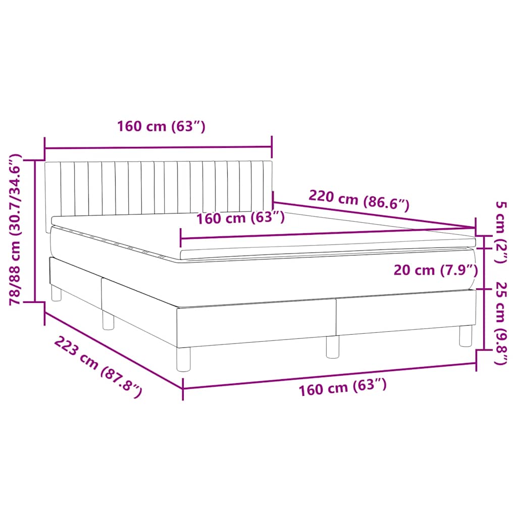 Mit diesem Boxspringbett genießt du eine erholsame Nachtruhe! Es sorgt für maximale Entspannung und einen angenehmen Schlaf. Weiches und komfortables Material: Der Samtstoff hat eine weiche und sanfte Oberfläche, die sich angenehm auf der Haut anfühlt und höchsten Komfort bietet.Taschenfederkernmatratze: Diese Matratze hat einzelne Taschenfedern, die unabhängig voneinander arbeiten. Somit bietet sie dir optimalen Halt, indem sie auf Druckstellen in jedem Bereich unabhängig reagieren. Diese Konstruktion verhindert das "Zusammenrollen" und reduziert die Bewegungsübertragung im Vergleich zu alten Federkernmatratzen. Jede Taschenfeder stützt die Körper-Druckstellen individuell.Höhenverstellbares Kopfteil: Das Kopfteil ist nach Wunsch höhenverstellbar.Komfortable Matratzenauflage: Die Auflage verbessert den Halt und den Komfort mit ihrer weichen, atmungsaktiven Oberfläche und verlängert gleichzeitig die Lebensdauer deiner Matratze. Der abnehmbare Bezug ermöglicht ein einfaches Waschen, was die Pflege der Matratze zum Kinderspiel macht.Latten für optimale Unterstützung: Das Bettgestell ist mit Latten ausgestattet, die deine Matratze optimal stützen und auch für Atmungsaktivität sorgen. Gut zu wissen:Aus hygienischen Gründen kann die Matratze nicht zurückgegeben werden, wenn die Verpackung entfernt oder geöffnet wurde.