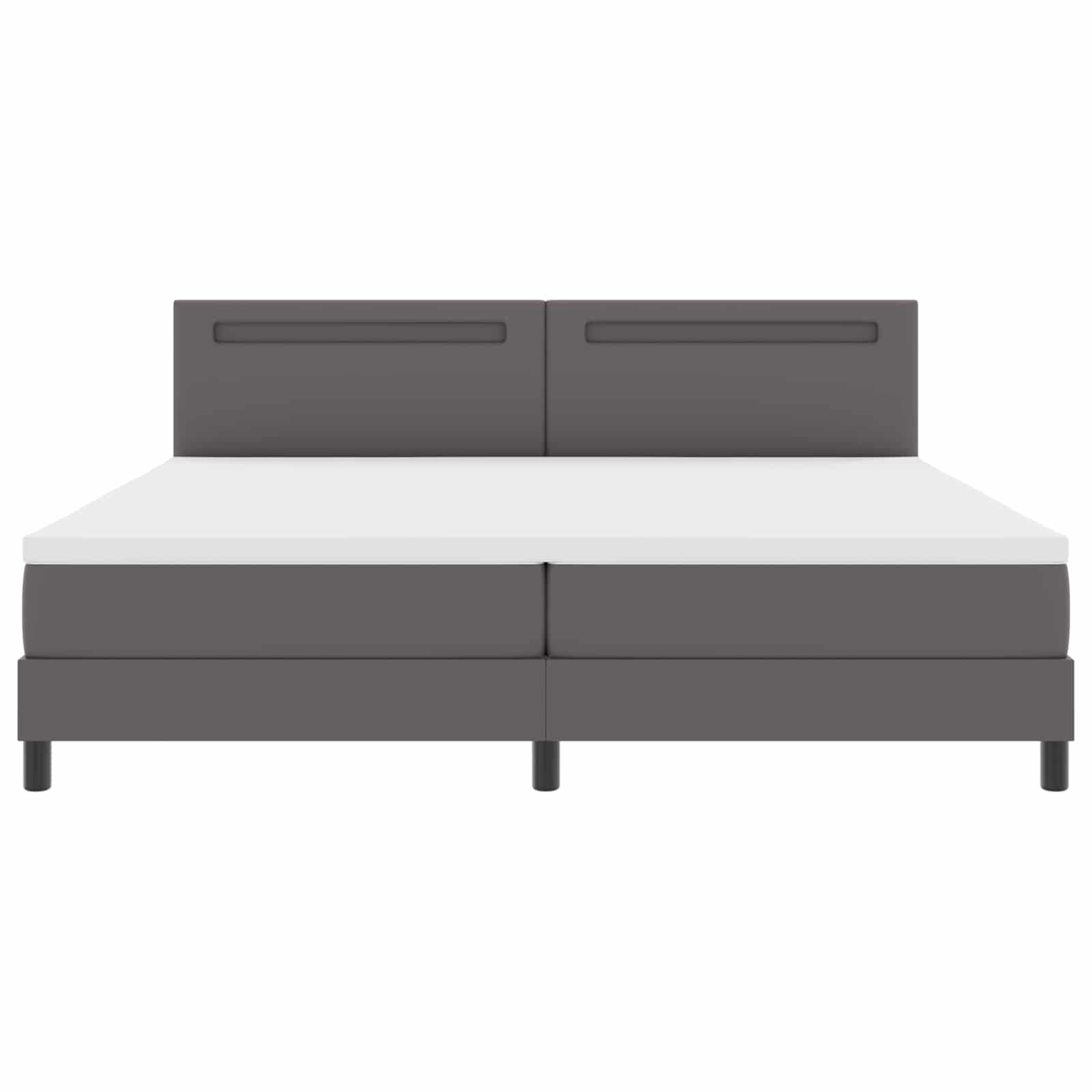 Mach's dir bequem und stylisch mit dem vidaXL Boxspringbett. Es kommt mit einer hochdichten Schaumstoffmatratze und einer schicken grauen Kunstlederoberfläche. Das höhenverstellbare Kopfteil sorgt für Bequemlichkeit, während das moderne Design perfekt zu deinem Schlafzimmer passt. Der abnehmbare Bezug ist super für Hygiene und Pflege ? eine echt schlaue Wahl für den Alltag.
