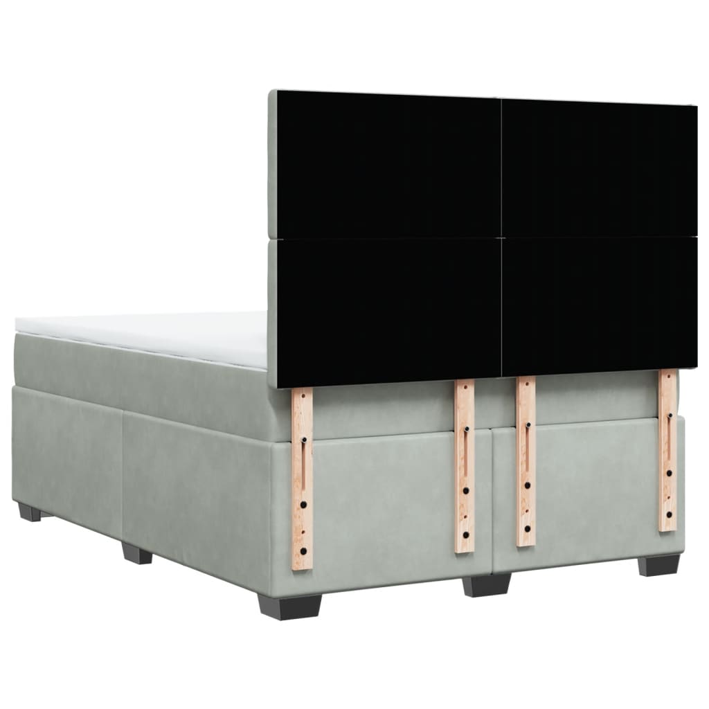 Mit diesem Boxspringbett genießt du eine erholsame Nachtruhe! Es sorgt für maximale Entspannung und einen angenehmen Schlaf.Weiches und komfortables Material: Der Samtstoff hat eine weiche und sanfte Oberfläche, die sich angenehm auf der Haut anfühlt und höchsten Komfort bietet.Taschenfederkernmatratze: Diese Matratze hat einzelne Taschenfedern, die unabhängig voneinander arbeiten. Somit bietet sie dir optimalen Halt, indem sie auf Druckstellen in jedem Bereich unabhängig reagieren. Diese Konstruktion verhindert das "Zusammenrollen" und reduziert die Bewegungsübertragung im Vergleich zu alten Federkernmatratzen. Jede Taschenfeder stützt die Körper-Druckstellen individuell.LED-Beleuchtung für ein angenehmes Ambiente: Dieses Bett verfügt über LED-Leuchten, die einfach eingestellt werden können, um eine persönliche Lichtshow zu kreieren. Du kannst die Modi, Farben und Helligkeit anpassen, um das Ambiente deines Innenraums zu verbessern.Höhenverstellbares Kopfteil: Das Kopfteil ist nach Wunsch höhenverstellbar.Komfortable Matratzenauflage: Die Auflage verbessert den Halt und den Komfort mit ihrer weichen, atmungsaktiven Oberfläche und verlängert gleichzeitig die Lebensdauer deiner Matratze. Der abnehmbare Bezug ermöglicht ein einfaches Waschen, was die Pflege der Matratze zum Kinderspiel macht.Gut zu wissen:Das Produkt verfügt über einen USB-Anschluss, für den eine zertifizierte 5V-USB-Stromquelle erforderlich ist (nicht im Lieferumfang enthalten).Aus hygienischen Gründen kann die Matratze nicht zurückgegeben werden, wenn die Verpackung entfernt oder geöffnet wurde.Nur der Teil mit dem Symbol kann geschnitten werden und nur der Teil mit dem USB funktioniert auch weiterhin.