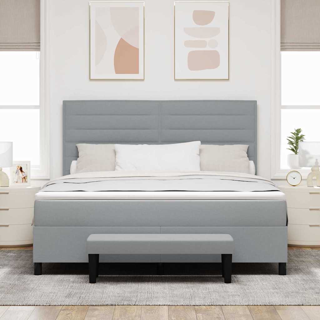 Dieses stylische Boxspringbett verbindet Komfort und Funktionalität problemlos und ist für jeden Schlafraum geeignet. Es bietet ein verstellbares Kopfteil und eine mittel-feste Matratze, die super Unterstützung für verschiedene Schlafpositionen bietet. Stoffmaterial: Der hochwertige Stoff sorgt für einen luxuriösen Look und fühlt sich weich an. Durch die atmungsaktiven Eigenschaften bleibt es kühl und sorgt zu jeder Jahreszeit für ein angenehmes Schlafgefühl. Schaumfüllung: Die Kombination aus Taschenkern und Schaum bietet hervorragende Unterstützung und Bewegungsisolierung. Der gezielte Einsatz von Schaum sorgt dafür, dass das Bett sowohl bequem als auch elastisch bleibt, optimal für Schläfer, die ruhigen und erholsamen Schlaf suchen. Holzwerkstoffrahmen: Der stabile Holzwerkstoffrahmen sorgt für Langlebigkeit und bleibt dabei besonders stylish. Dieses Material ist robust und fügt sich gut in jedes moderne Schlafzimmerdesign ein. Verstellbare Eigenschaften: Das Kopfteil verfügt über zwei Höhenoptionen, sodass du das Bett individuell anpassen kannst. Perfekt, um deinem Raum einen persönlichen Touch zu verleihen. Pflege und Wartung: Die Montage ist einfach, dabei helfen zwei Personen und ein Schraubendreher. Halte die Stoffoberfläche einfach sauber, indem du sie sanft abwischst. So bleibt das Bett lange in Topform.