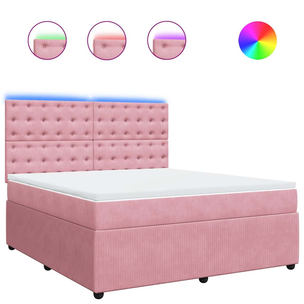 Mit diesem Boxspringbett genießt du eine erholsame Nachtruhe! Es sorgt für maximale Entspannung und einen angenehmen Schlaf. Weiches und komfortables Material: Der Samtstoff hat eine weiche und sanfte Oberfläche, die sich angenehm auf der Haut anfühlt und höchsten Komfort bietet. Taschenfederkernmatratze: Diese Matratze hat einzelne Taschenfedern, die unabhängig voneinander arbeiten. Somit bietet sie dir optimalen Halt, indem sie auf Druckstellen in jedem Bereich unabhängig reagieren. Diese Konstruktion verhindert das "Zusammenrollen" und reduziert die Bewegungsübertragung im Vergleich zu alten Federkernmatratzen. Jede Taschenfeder stützt die Körper-Druckstellen individuell. LED-Beleuchtung für ein angenehmes Ambiente: Dieses Bett verfügt über LED-Leuchten, die einfach eingestellt werden können, um eine persönliche Lichtshow zu kreieren. Du kannst die Modi, Farben und Helligkeit anpassen, um das Ambiente deines Innenraums zu verbessern. Höhenverstellbares Kopfteil: Das Kopfteil ist nach Wunsch höhenverstellbar. Komfortable Matratzenauflage: Die Auflage verbessert den Halt und den Komfort mit ihrer weichen, atmungsaktiven Oberfläche und verlängert gleichzeitig die Lebensdauer deiner Matratze. Der abnehmbare Bezug ermöglicht ein einfaches Waschen, was die Pflege der Matratze zum Kinderspiel macht. Gut zu wissen: Das Produkt verfügt über einen USB-Anschluss, für den eine zertifizierte 5V-USB-Stromquelle erforderlich ist (nicht im Lieferumfang enthalten). Aus hygienischen Gründen kann die Matratze nicht zurückgegeben werden, wenn die Verpackung entfernt oder geöffnet wurde. Nur der Teil mit dem Symbol kann geschnitten werden und nur der Teil mit dem USB funktioniert auch weiterhin.