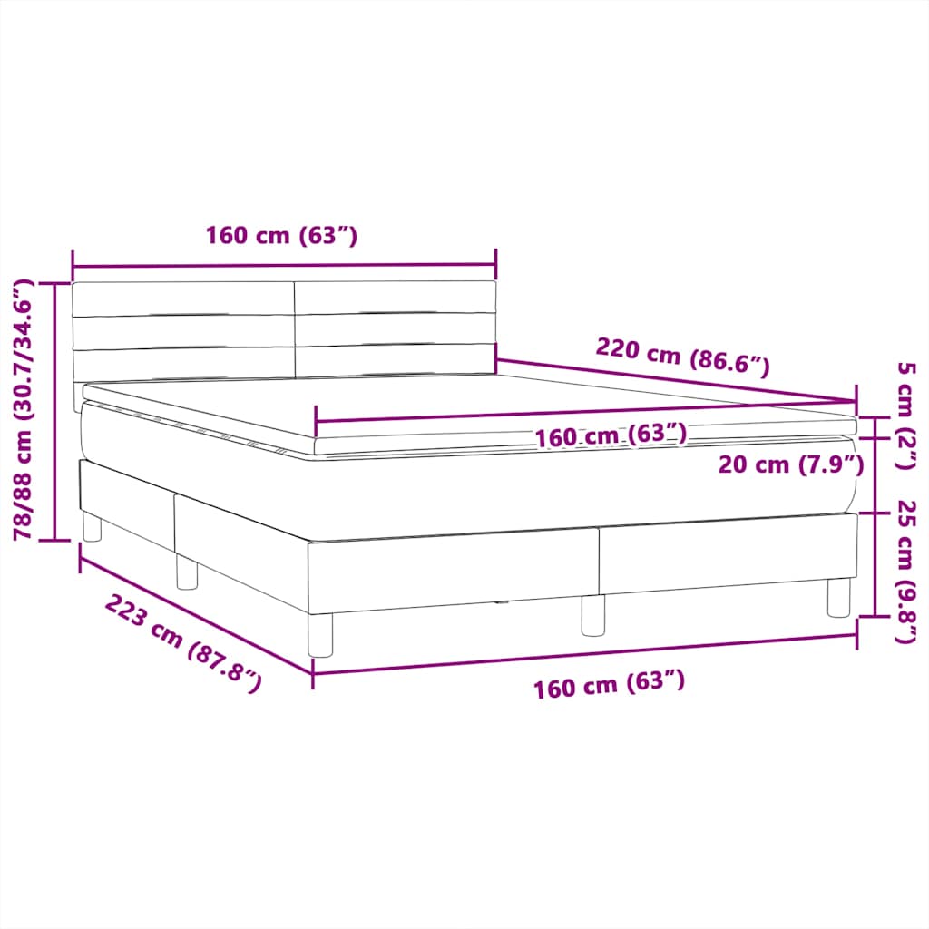 Mit diesem Boxspringbett genießt du eine erholsame Nachtruhe! Es sorgt für maximale Entspannung und einen angenehmen Schlaf. Weiches und komfortables Material: Der Samtstoff hat eine weiche und sanfte Oberfläche, die sich angenehm auf der Haut anfühlt und höchsten Komfort bietet.Taschenfederkernmatratze: Diese Matratze hat einzelne Taschenfedern, die unabhängig voneinander arbeiten. Somit bietet sie dir optimalen Halt, indem sie auf Druckstellen in jedem Bereich unabhängig reagieren. Diese Konstruktion verhindert das "Zusammenrollen" und reduziert die Bewegungsübertragung im Vergleich zu alten Federkernmatratzen. Jede Taschenfeder stützt die Körper-Druckstellen individuell.Höhenverstellbares Kopfteil: Das Kopfteil ist nach Wunsch höhenverstellbar.Komfortable Matratzenauflage: Die Auflage verbessert den Halt und den Komfort mit ihrer weichen, atmungsaktiven Oberfläche und verlängert gleichzeitig die Lebensdauer deiner Matratze. Der abnehmbare Bezug ermöglicht ein einfaches Waschen, was die Pflege der Matratze zum Kinderspiel macht.Latten für optimale Unterstützung: Das Bettgestell ist mit Latten ausgestattet, die deine Matratze optimal stützen und auch für Atmungsaktivität sorgen. Gut zu wissen:Aus hygienischen Gründen kann die Matratze nicht zurückgegeben werden, wenn die Verpackung entfernt oder geöffnet wurde.