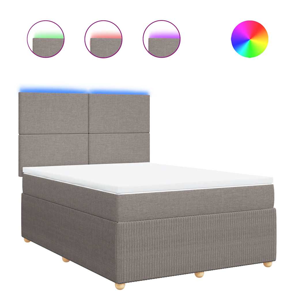 Mit diesem Boxspringbett genießt du eine erholsame Nachtruhe! Es sorgt für maximale Entspannung und einen angenehmen Schlaf. Weiches und strapazierfähiges Material: Das Polyestergewebe vereint Weichheit, Atmungsaktivität und Strapazierfähigkeit, sodass du ultimativen Komfort und Gemütlichkeit im Bett erlebst. Taschenfederkernmatratze: Diese Matratze hat einzelne Taschenfedern, die unabhängig voneinander arbeiten. Somit bietet sie dir optimalen Halt, indem sie auf Druckstellen in jedem Bereich unabhängig reagieren. Diese Konstruktion verhindert das "Zusammenrollen" und reduziert die Bewegungsübertragung im Vergleich zu alten Federkernmatratzen. Jede Taschenfeder stützt die Körper-Druckstellen individuell. LED-Beleuchtung für ein angenehmes Ambiente: Dieses Bett verfügt über LED-Leuchten, die einfach eingestellt werden können, um eine persönliche Lichtshow zu kreieren. Du kannst die Modi, Farben und Helligkeit anpassen, um das Ambiente deines Innenraums zu verbessern. Höhenverstellbares Kopfteil: Das Kopfteil ist nach Wunsch höhenverstellbar. Komfortable Matratzenauflage: Die Auflage verbessert den Halt und den Komfort mit ihrer weichen, atmungsaktiven Oberfläche und verlängert gleichzeitig die Lebensdauer deiner Matratze. Der abnehmbare Bezug ermöglicht ein einfaches Waschen, was die Pflege der Matratze zum Kinderspiel macht. Gut zu wissen: Das Produkt verfügt über einen USB-Anschluss, für den eine zertifizierte 5V-USB-Stromquelle erforderlich ist (nicht im Lieferumfang enthalten). Aus hygienischen Gründen kann die Matratze nicht zurückgegeben werden, wenn die Verpackung entfernt oder geöffnet wurde. Nur der Teil mit dem Symbol kann geschnitten werden und nur der Teil mit dem USB funktioniert auch weiterhin.