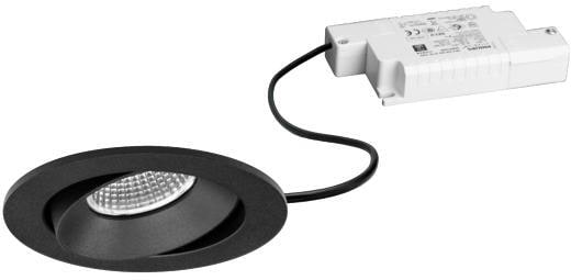 LED-Einbaustrahlerset, Phasenabschnitt dimmbar, strukturschwarz, rund. Ausgeführt in kompakter Bauform für werkzeuglose Schnellmontage zum Deckeneinbau. Set inkl. Konverter für 230 V-Netzspannung, Phasenabschnitt dimmbar, Maße Konverter: L 110 x B 50 x H 19 mm Montageart: Einbaumontage, Montageort: Deckenmontage, Material: Aluminium / Polycarbonat, Schutzart raumseitig: nach DIN EN 60529: IP20, Schutzklasse: (EN 61140) II, Spannung: 230V AC 50Hz, Leistung: 7 W, Anzahl der Leuchtmittel / Fassungen: 1 Stück, Lichtstrom: 680 lm, Farbtemperatur: 3.000 K, Abstrahlwinkel: 40°, Verstellbarkeit: schwenkbar, Mit Betriebsgerät: Ja, Dimmbar: Ja, Art der Dimmung: Phasenabschnitt.