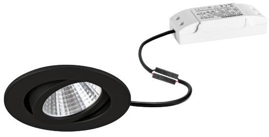 LED-Einbaustrahlerset, IP65, schaltbar, schwarz matt, rund. Ausgeführt in kompakter Bauform für werkzeuglose Schnellmontage zum Deckeneinbau. Set inkl. Konverter für 230 V-Netzspannung, schaltbar, Maße Konverter: L 71 x B 36 x H 22 mm Montageart: Einbaumontage, Montageort: Deckenmontage, Material: Aluminium / Stahl / Silikonkautschuk / Polycarbonat, Schutzart raumseitig: nach DIN EN 60529: IP65, Schutzklasse: (EN 61140) II, Spannung: 230V AC 50Hz, Leistung: 6 W, Anzahl der Leuchtmittel / Fassungen: 1 Stück, Lichtstrom: 730 lm, Farbtemperatur: 3.000 K, Abstrahlwinkel: 38°, Verstellbarkeit: schwenkbar, Mit Betriebsgerät: Ja, Dimmbar: Nein, Art der Dimmung: schaltbar.