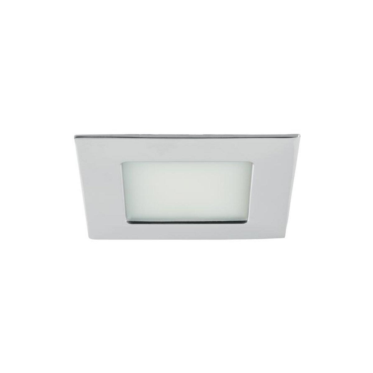 LED-Einbaudownlight, IP44, chrom, quadratisch. Ausgeführt in kompakter Bauform für werkzeuglose Schnellmontage zum Deckeneinbau. Leuchte optimiert zur Installation in Möbeln und Holzwerkstoffen.