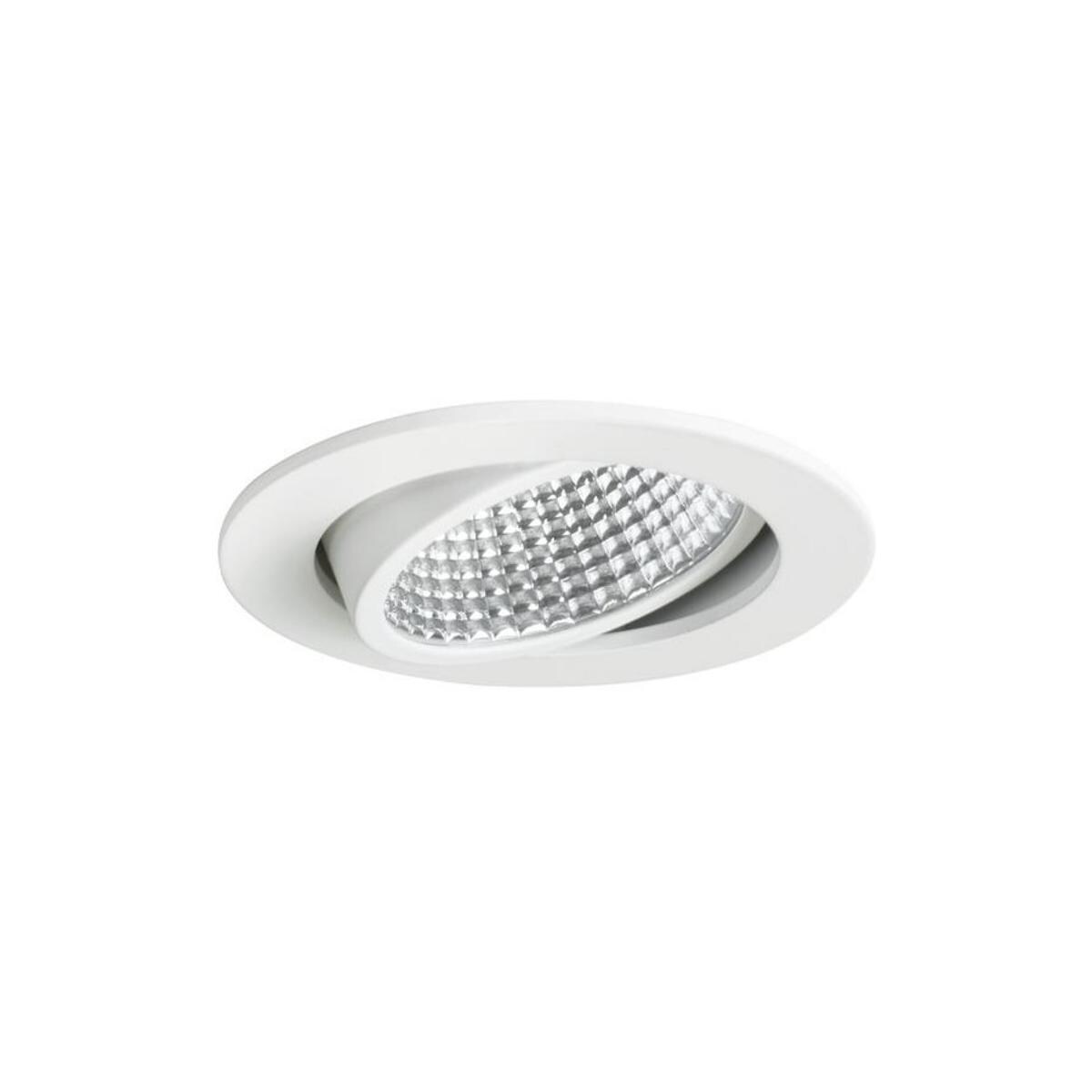 LED-Einbaustrahler, dim2warm, weiß, rund. Ausgeführt in kompakter Bauform für werkzeuglose Schnellmontage zum Deckeneinbau. Wird die Leuchte gedimmt, verringert sich die Farbtemperatur.